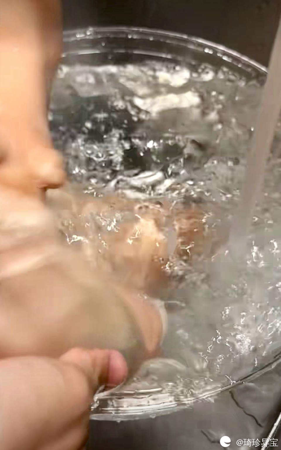 3,煮好的猪脚倒掉热水,放进冰水里面浸泡,然后开自来水一直流动冲洗,大约两个小时左右,猪脚最后的口感清不清爽就靠这一步。