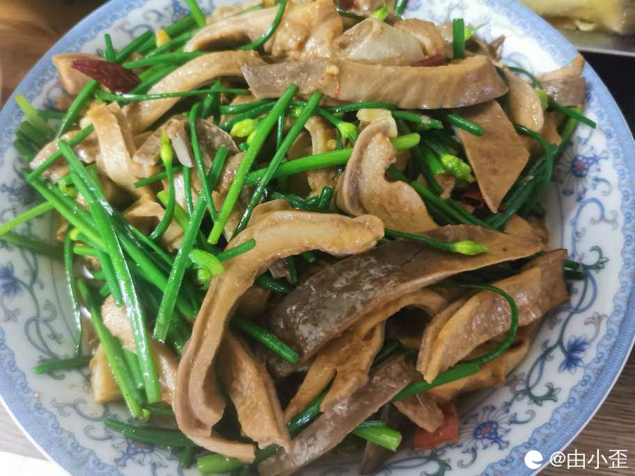 提前跟菜市老板打好了招呼,留了个新鲜的猪肚, 花了两天时间去处理这个猪肚,炒起来脆脆的,香香的,味道妙极了!