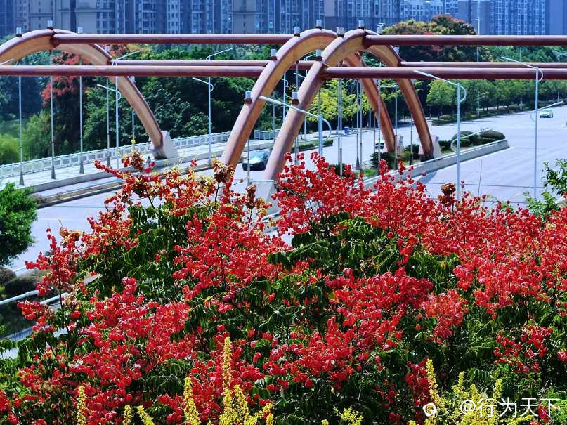 微风拂过,落英缤纷,为城市街道披上浪漫的秋装。栾树花期可持续至九月末,快来打卡这份限定版秋色,漫步树下,感受临桂新区的诗意与活力!