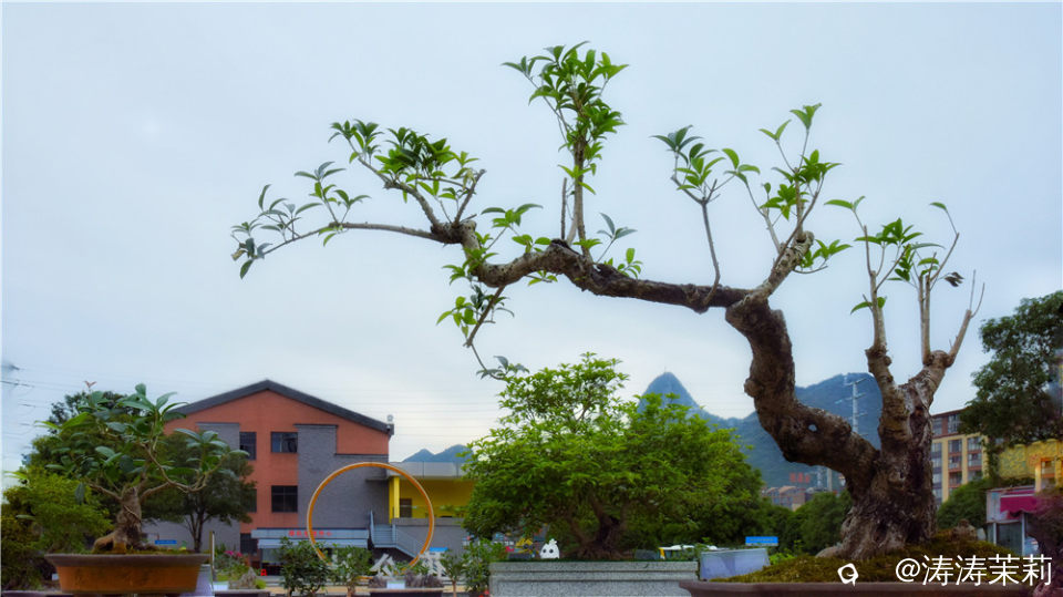 在我们的印象里,桂花都是一株株的树木,像这样一盆盆匠心雕琢的精致桂花盆景并不多见,它们就像是桂树基因与当代园艺美学咫尺天地间的碰撞。就像这一盆巧妙融入我们桂林城徽象鼻山的盆景,真是惟妙惟肖。