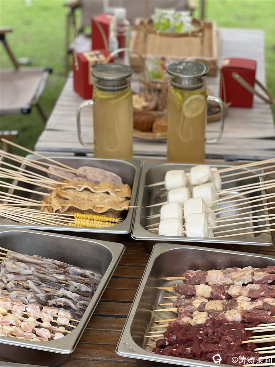 我们点的是6-10人份368元的烧烤套餐,有清冽的桂香冷萃茶、软糯的桂花糕、甜香的桂花雪花酥、各式让人垂涎欲滴的烧烤食材······