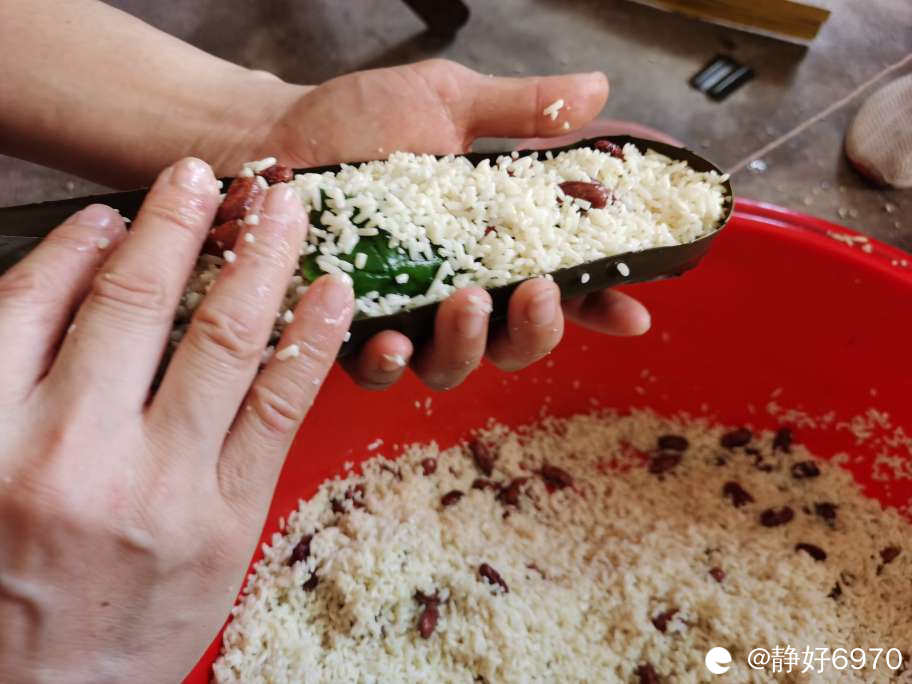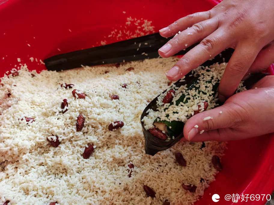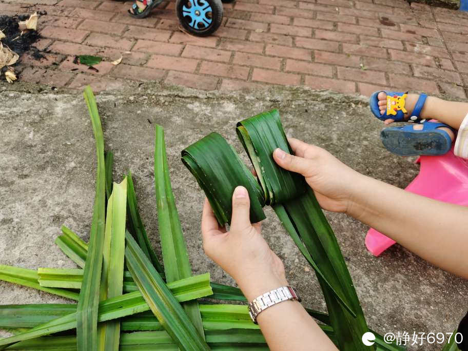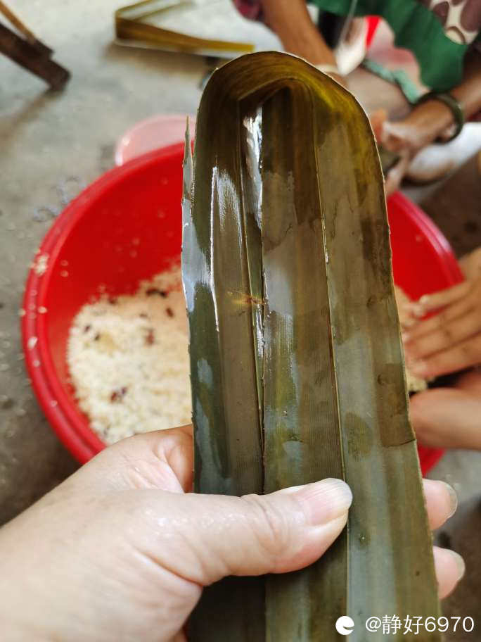 在桂林见过用粽叶,芭蕉叶,荷叶包的粽子,今天第一次见用勒古叶,假蒌叶来包粽子,说实话,这叶子在写帖子之前我都不认识,连名字都叫不出,还是问邻居妹妹才知道。