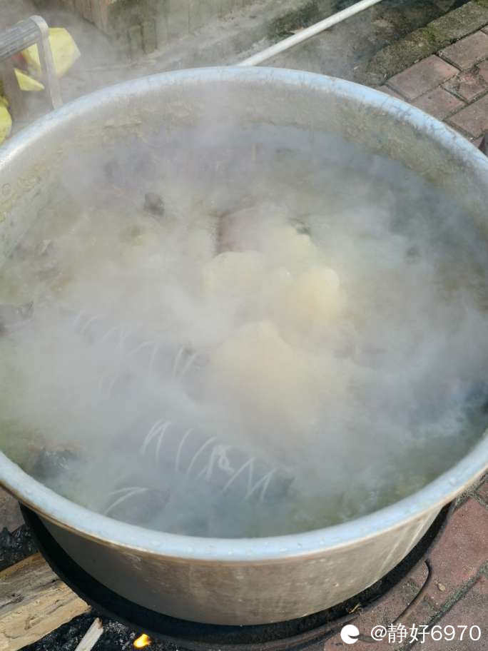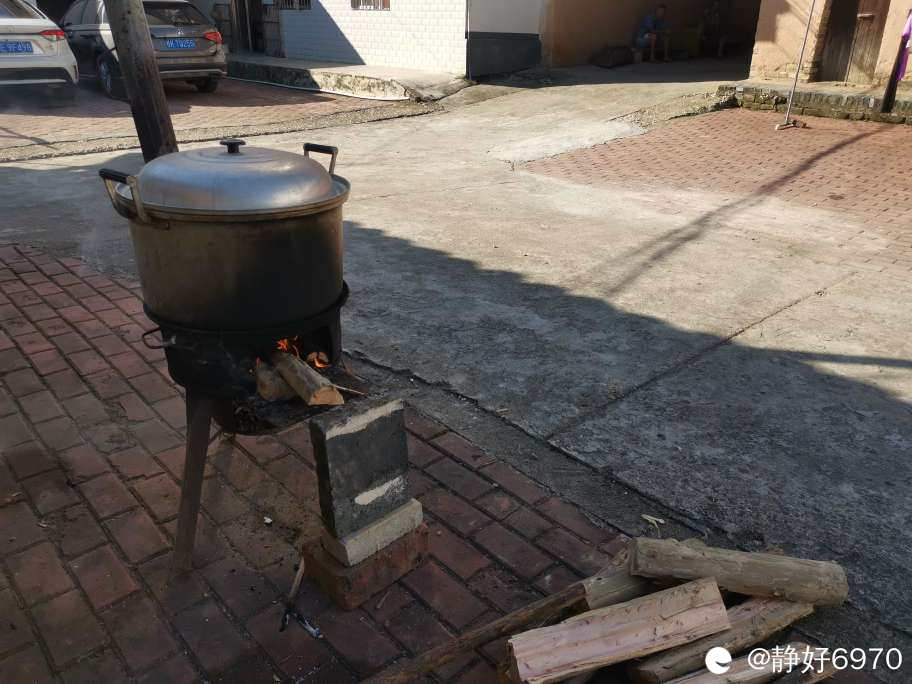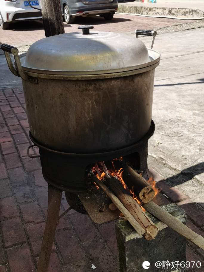 下午17点多拍的,太阳都要下山了,还没有煮好。邻居叔叔说时间还不够,但是站在锅边能闻到香味了。