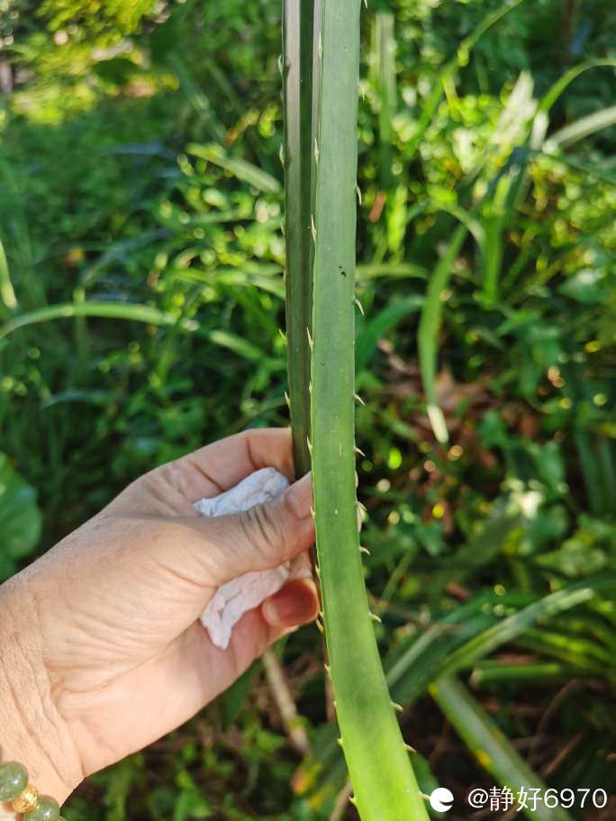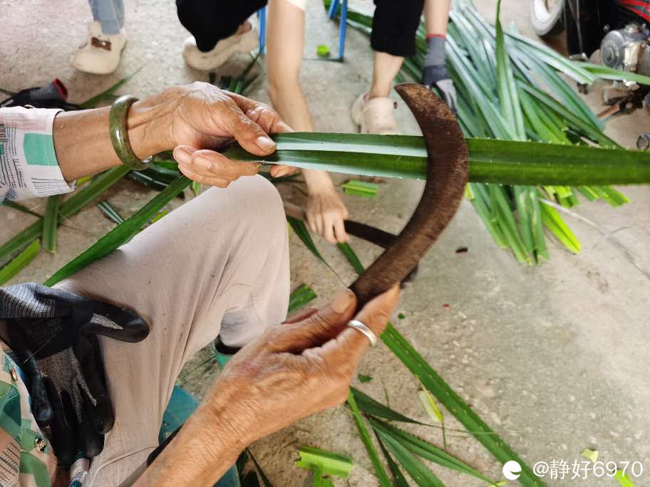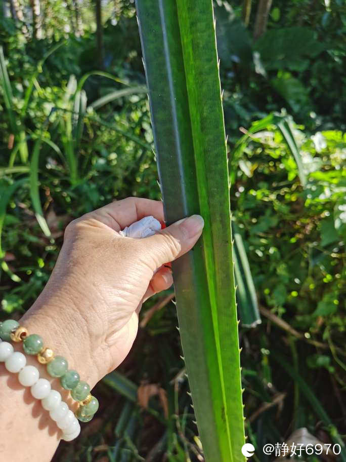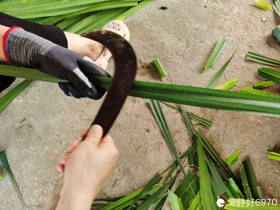 由于叶片三面有刺,做这一步需要有点耐心,不能弄破叶面,更不要伤着手,可以戴手套。尽量选比较嫩的叶片,不然比较硬,难处理。