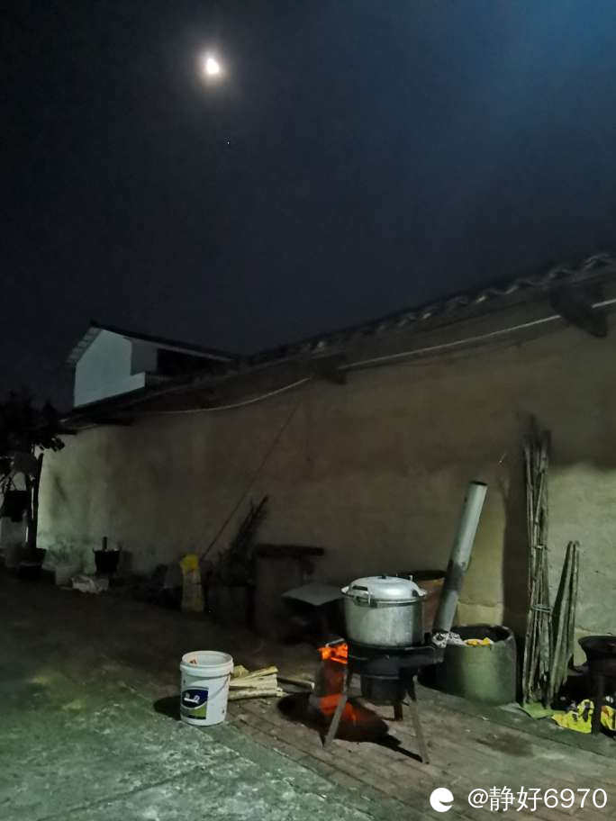 这是19点多拍的,月亮都出来了,中途加了五次水还没有煮好,可见美味是需要时间的。
