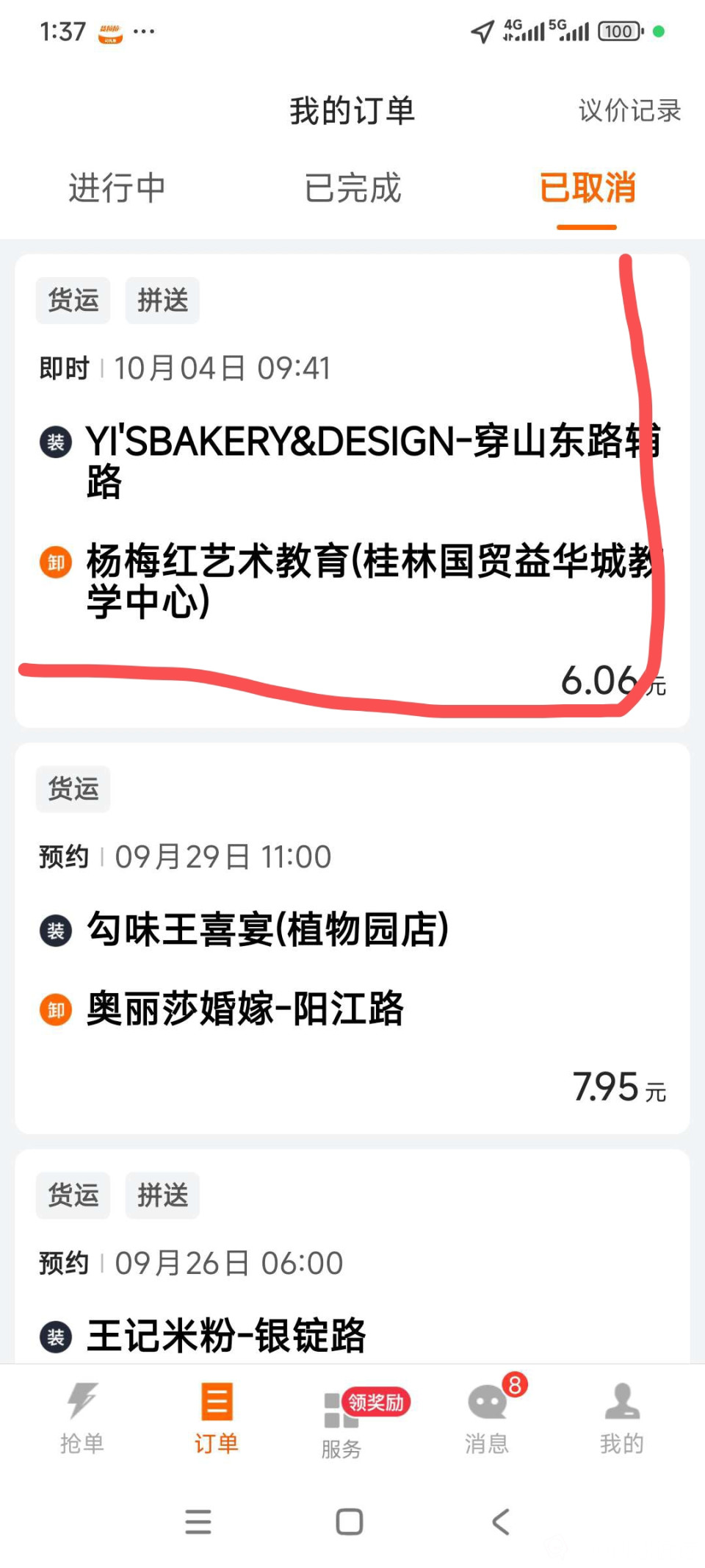 今天秋日当头一棒,图下一白跑一趟。到了目的地,对方取消订单,图下二是桃园居,定位荣和林溪府,又是白跑。但这两个小区不远,还有一个送修理厂的错误单。水箱盖没放进去,送到了对方客户才发现。取消订单的是父母,你早知道,为什么还有骑手跑腿,你不想惯着孩子,早决定定位不准是老人 ,你老了就去跳广场舞。别做老板,明天别害骑手,,让骑手送在,你就点好。要送的物品,别送到了这不到,那不到欧不回家,但是 好喜欢这小孩图一这么小帮妈妈