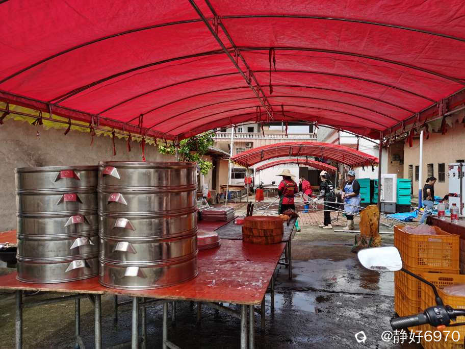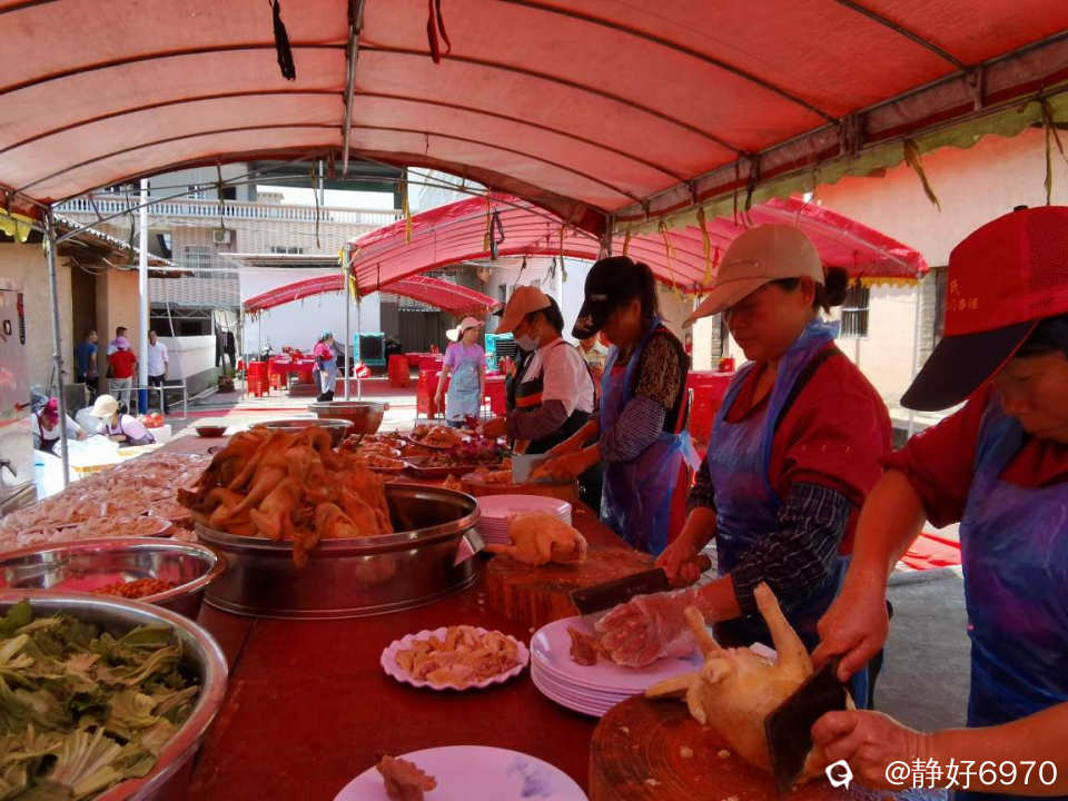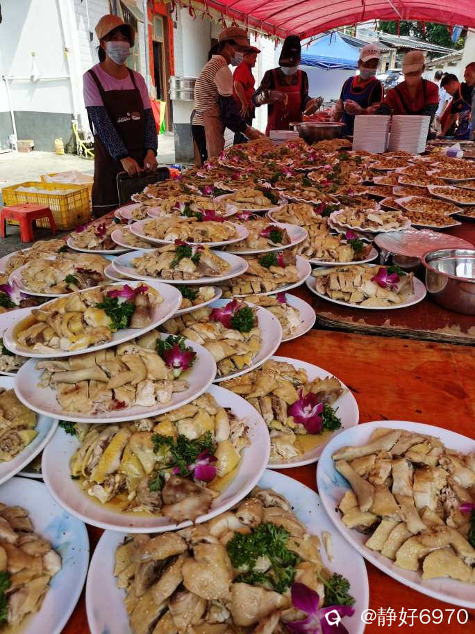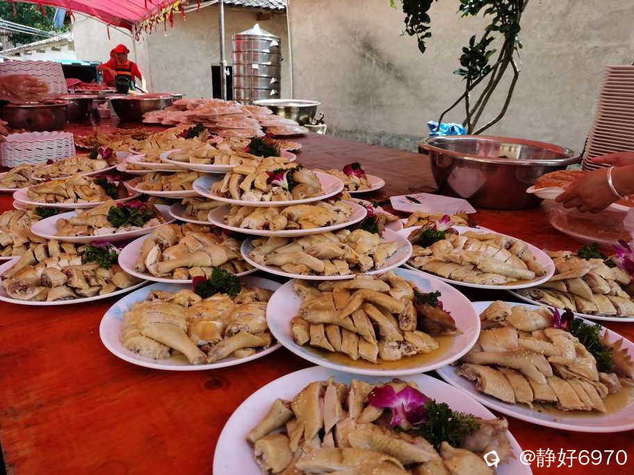 自己办酒席,最大好处食材新鲜看得见,分量十足,最重要的不会出现预制菜,味道杠杠的。白切鸡是客家人的必选,看,满满当当堆成一座小山。