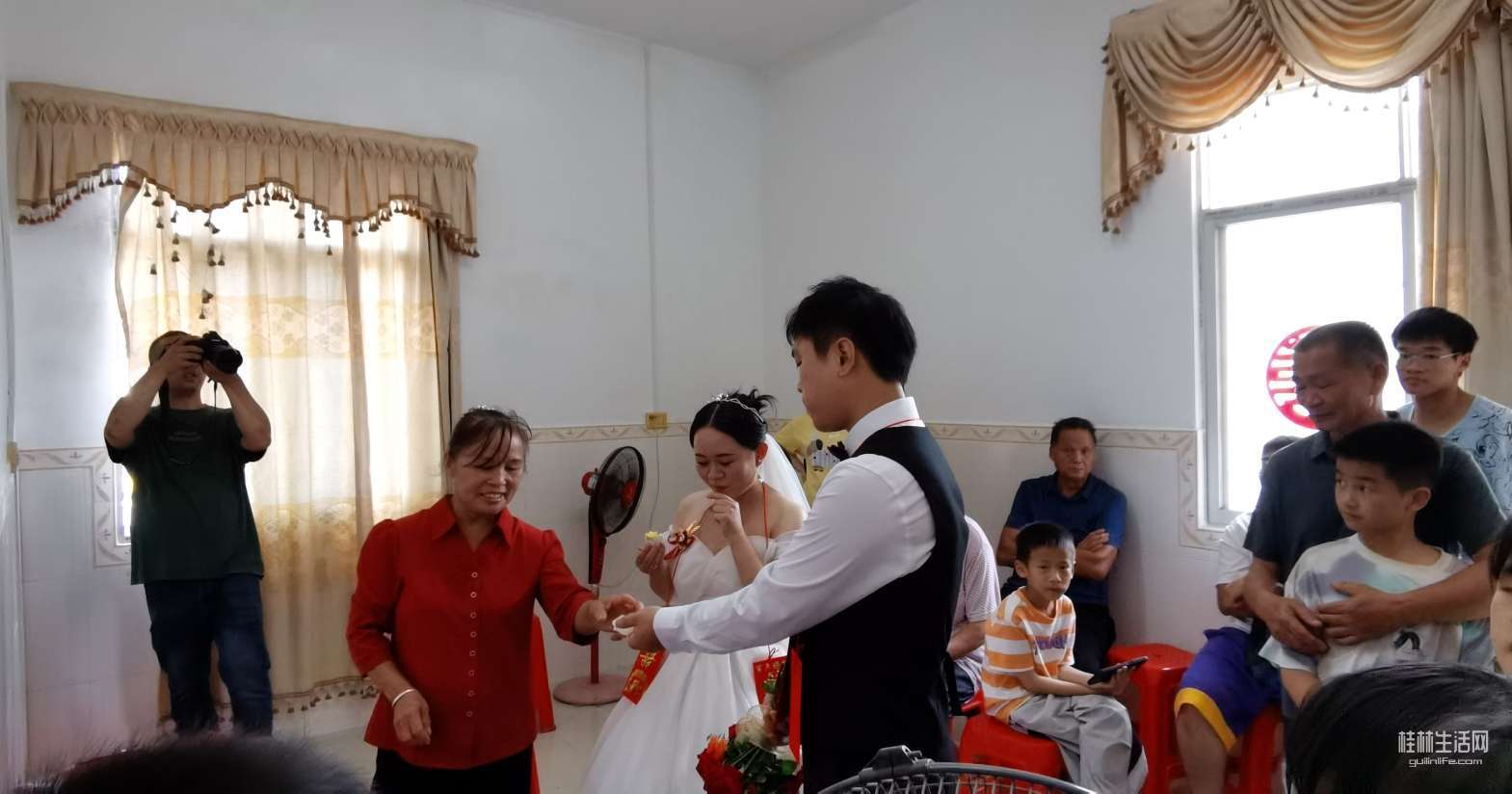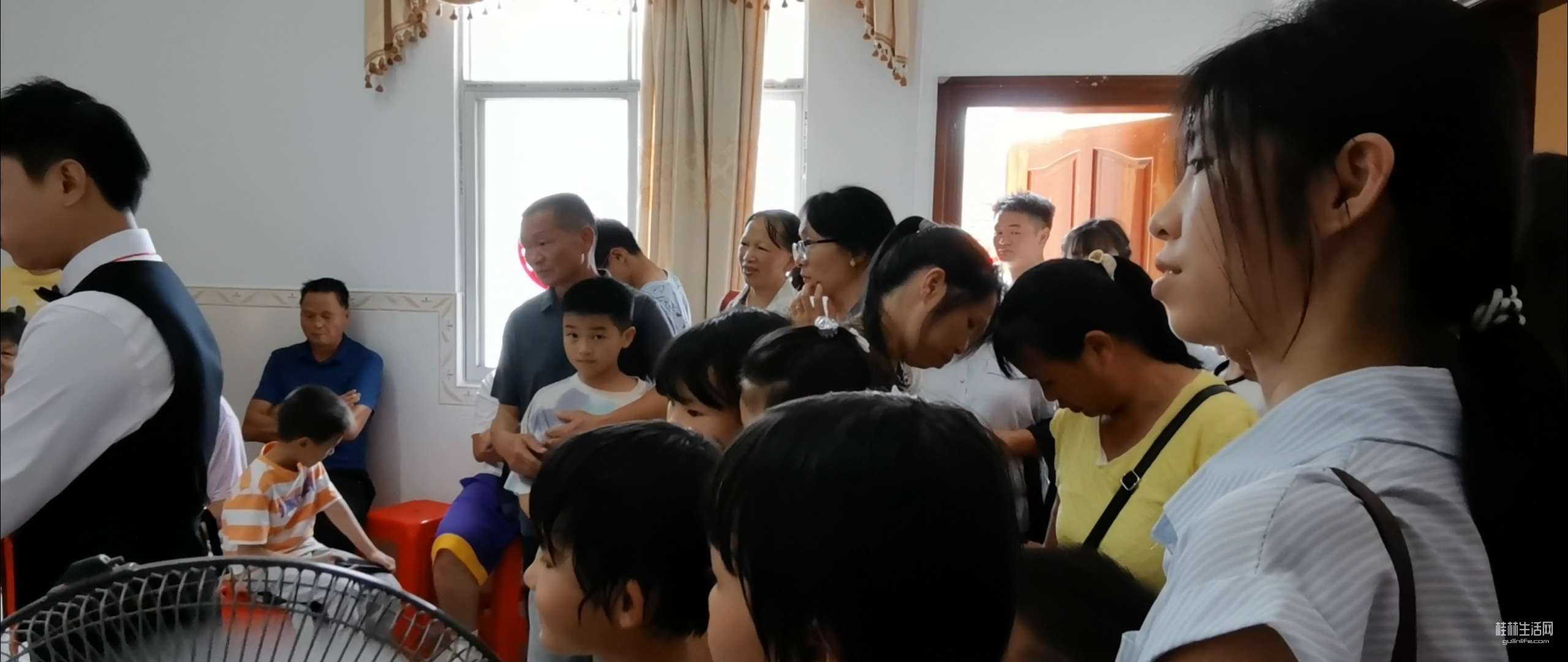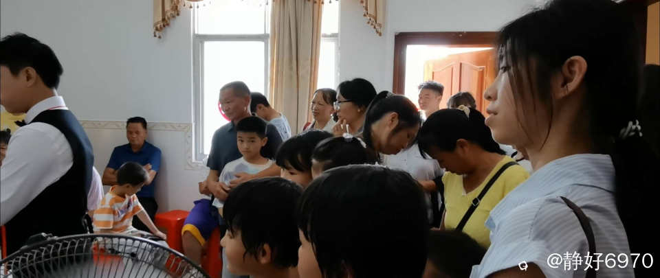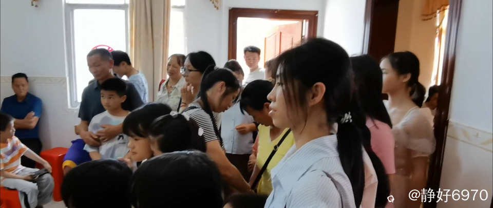 看一下婚房,被亲朋好友,乡亲们挤得水泄不通。个个站立在客厅和两个房间,大家有说有笑,虽然炎热,但是抵挡不住乡亲们的热情,进来一波又换一波,想不到这么热闹非凡。