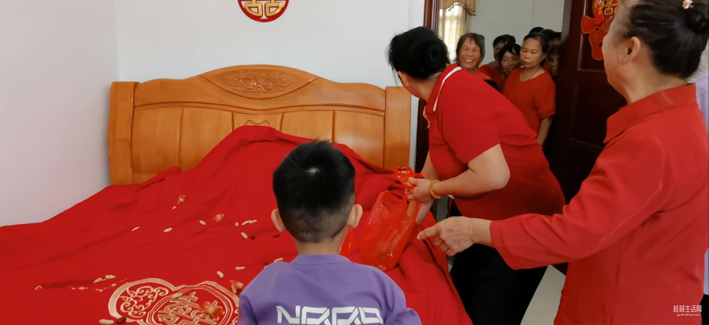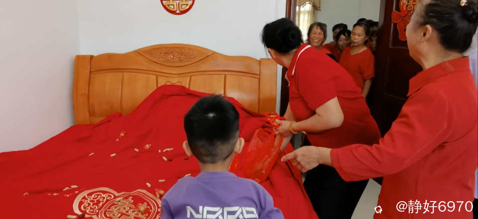 这是铺婚床,撒花生,红枣,桂圆……寓意早生贵子!