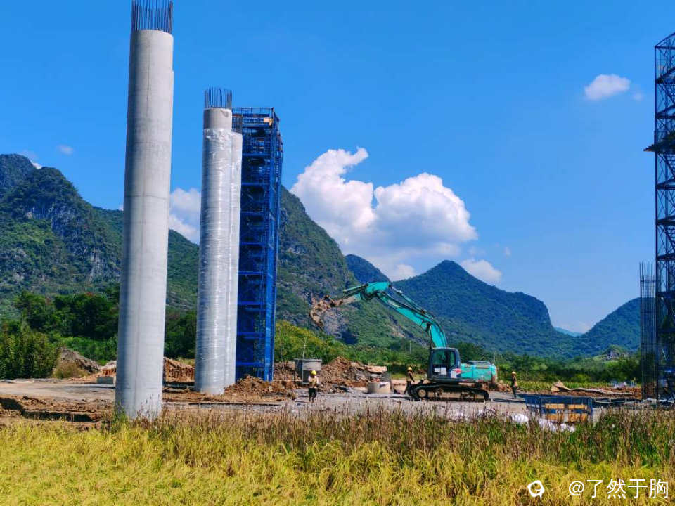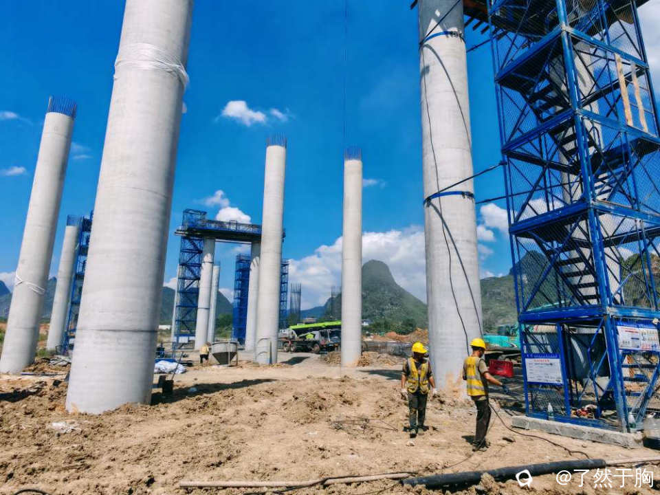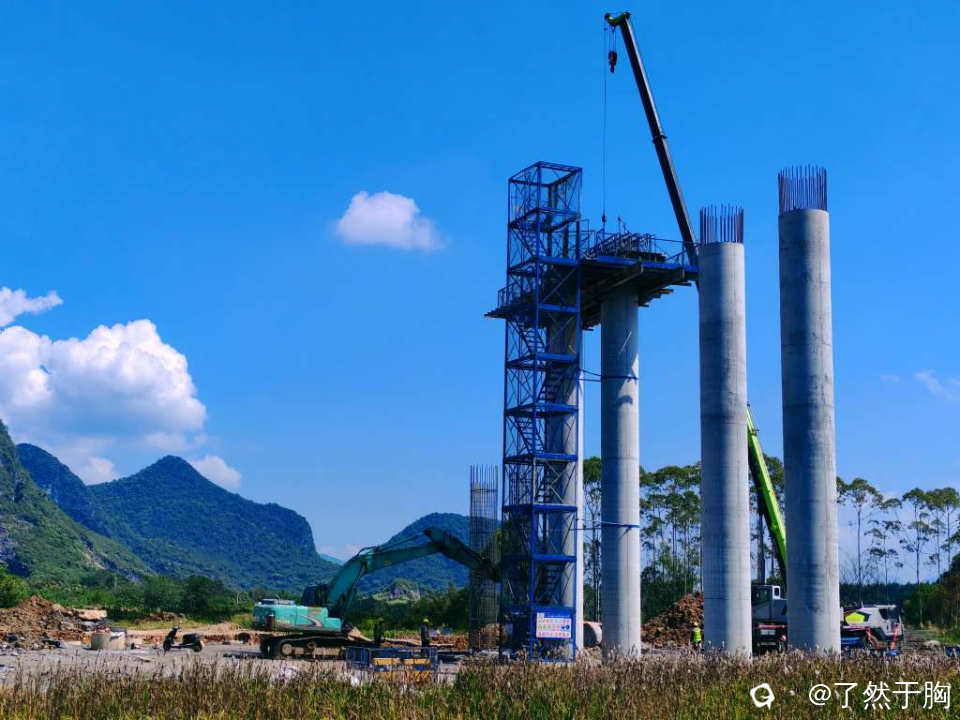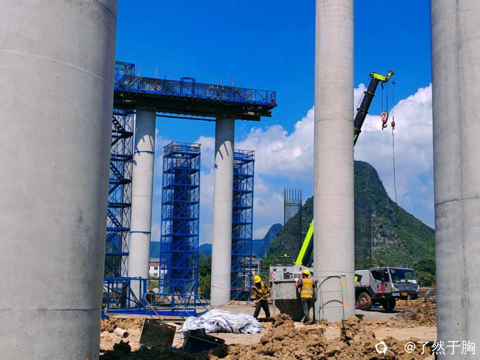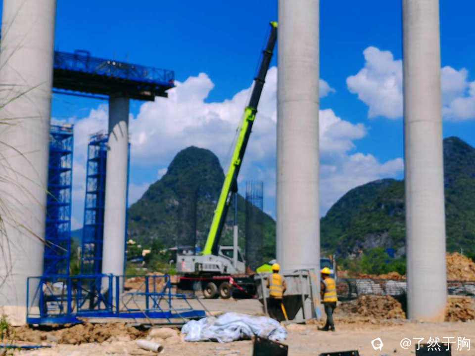 双节假日里,桂林外环高速公路的建没者们,没有休假,依旧在炎天酷日下,繁忙而紧张地工作着。
