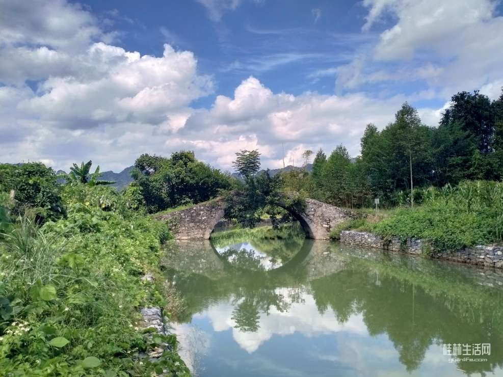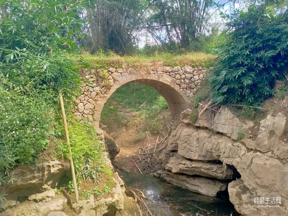 足直屯古桥,一条季节性小溪汇入金城江的交接处。