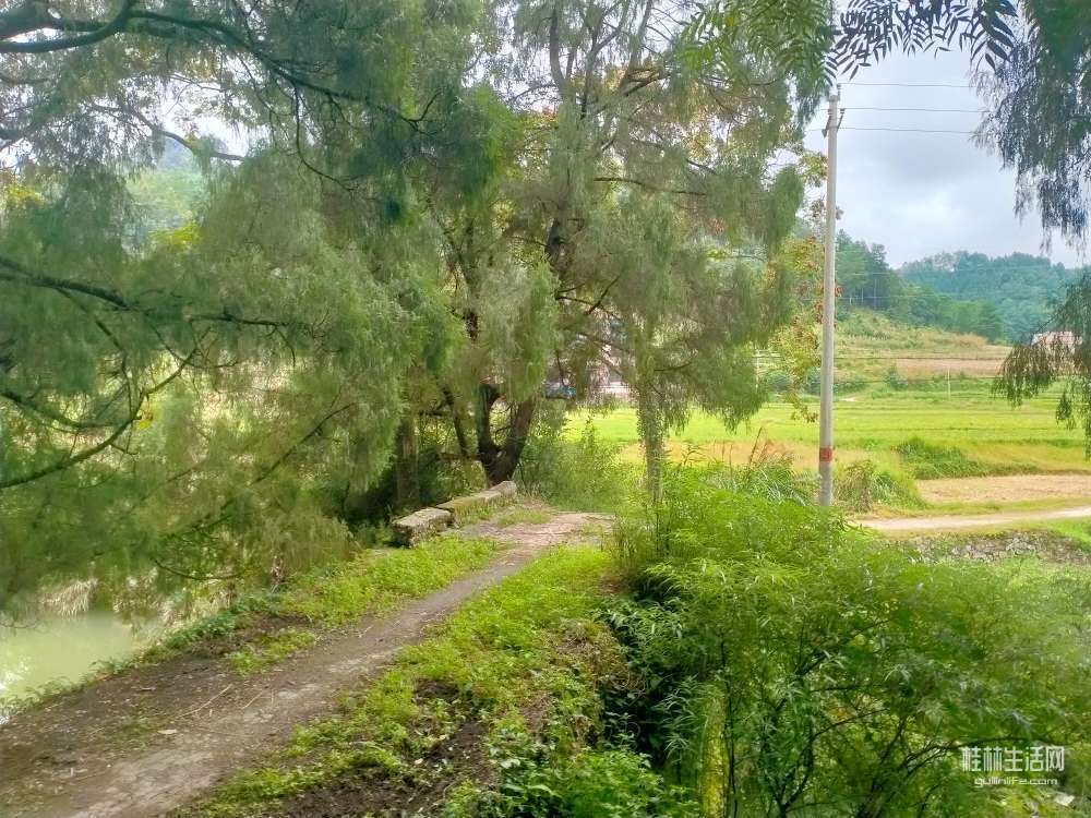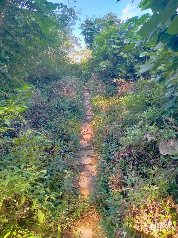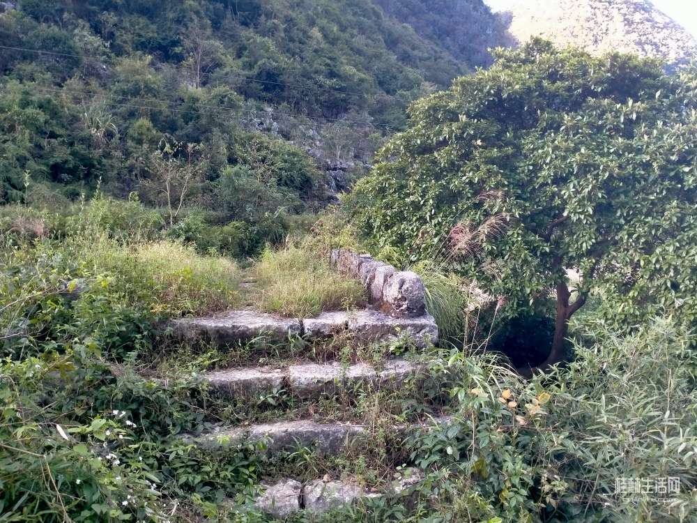 坡鸾村这座石拱桥茅草加身,石板路搭配群山峡谷还有点意境。