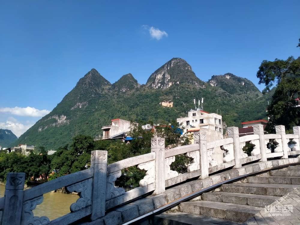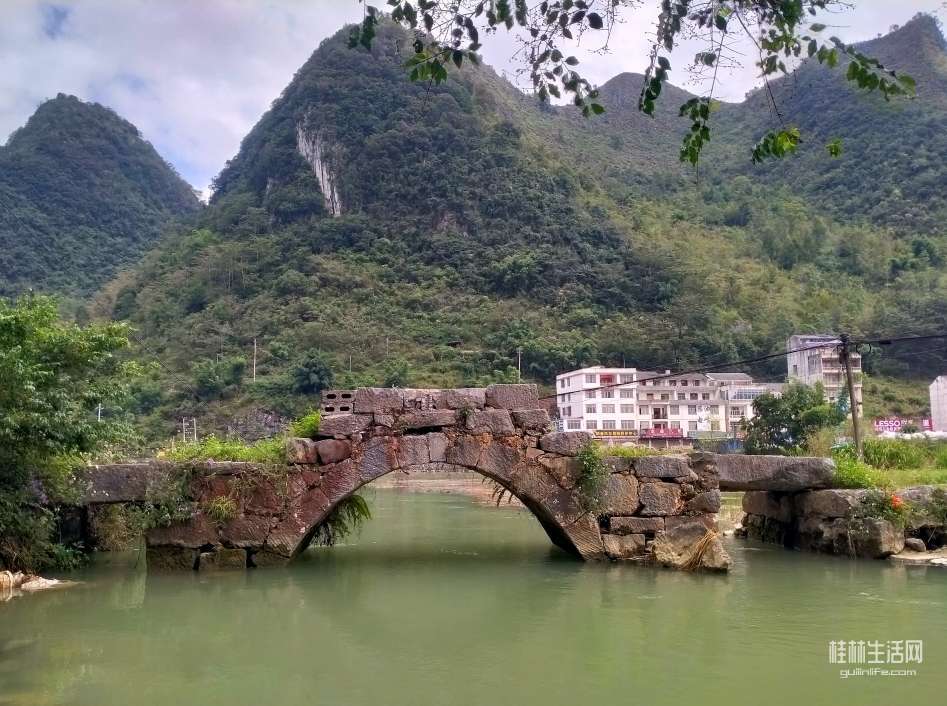 乐业县城旁边的平寨村石拱桥有点古韵。