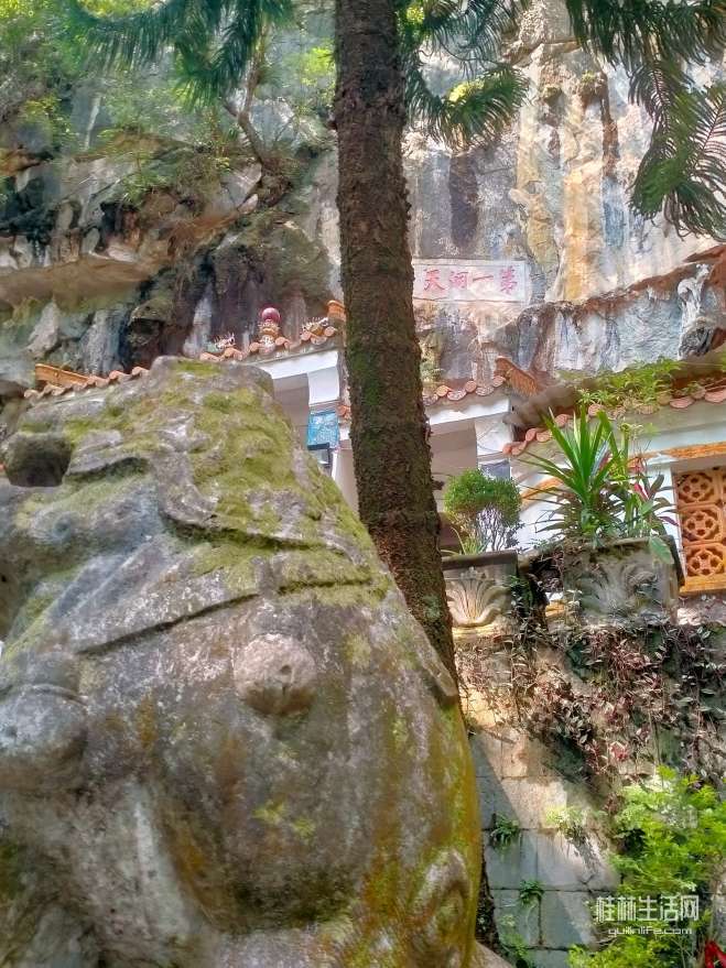 石狮背后崖壁上的“第一洞天”刻于乾隆时期,是水源洞几十个摩崖石刻中最早一幅。