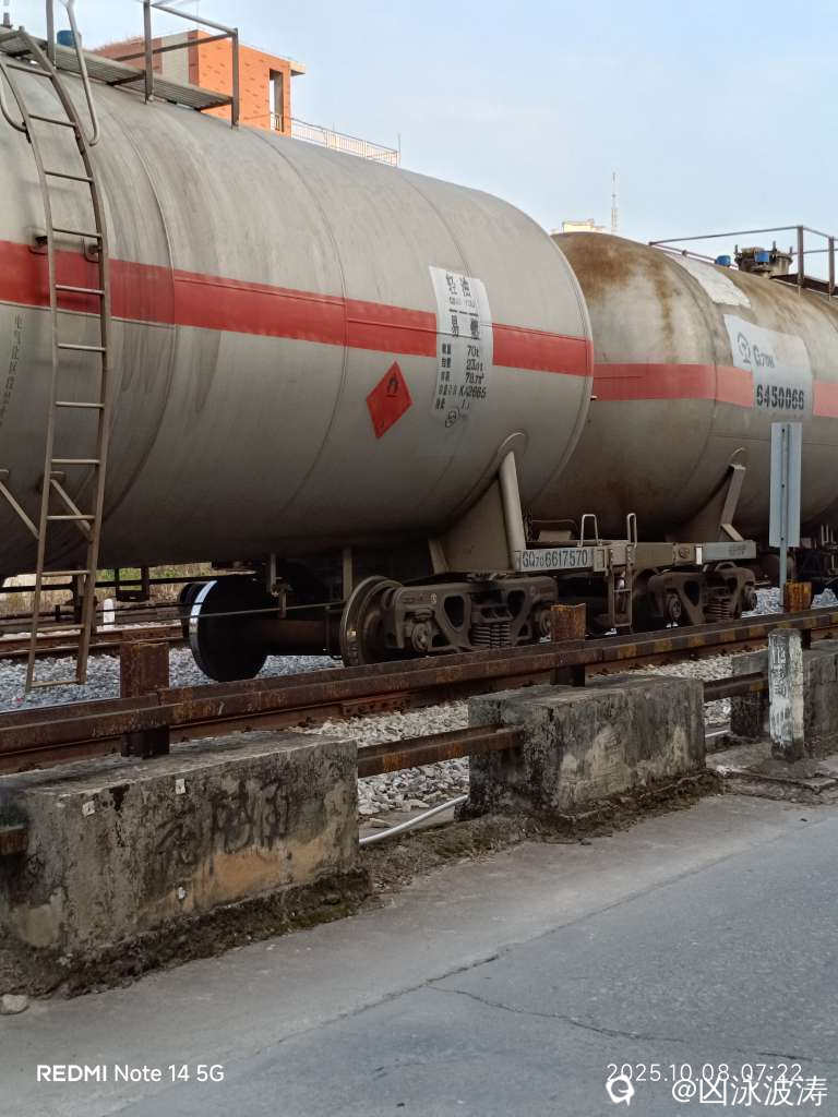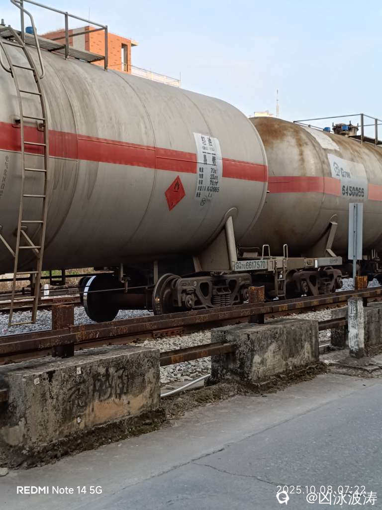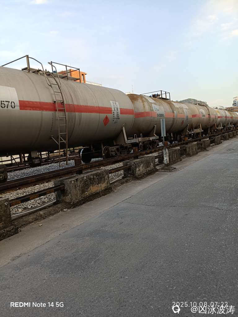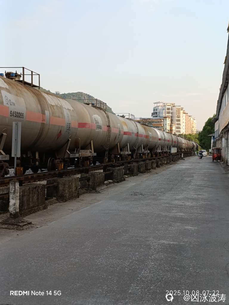 ,一公斤等于两升油。那么坛友你们就自己算一下。这趟列车拉了多少升油。这是小学生都可以计算出来的,假如是一辆五菱荣光面包车,油箱容积是50升油,那么这俩车使用一个油罐的油,那么可以跑很远很远就不愁了