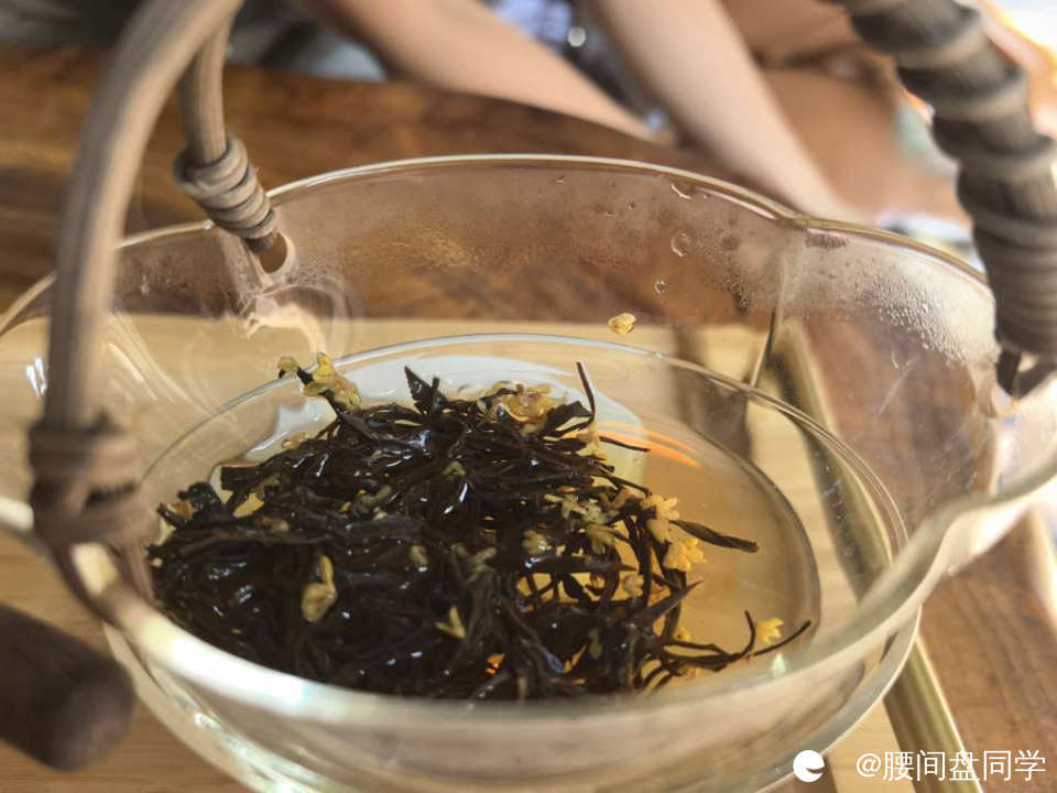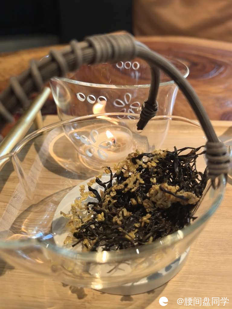 我们三人点了一股无限续杯的花涧茶,一阵桂花香气扑面而来,主理人告诉我们,里面是东方美人红茶加奶香桂花~