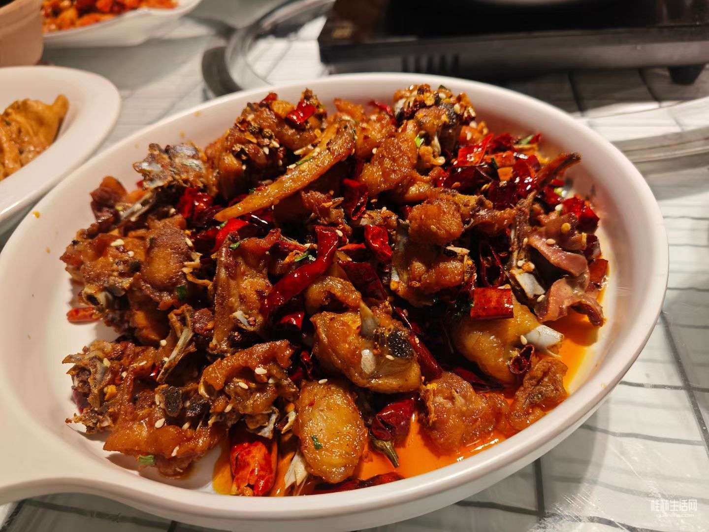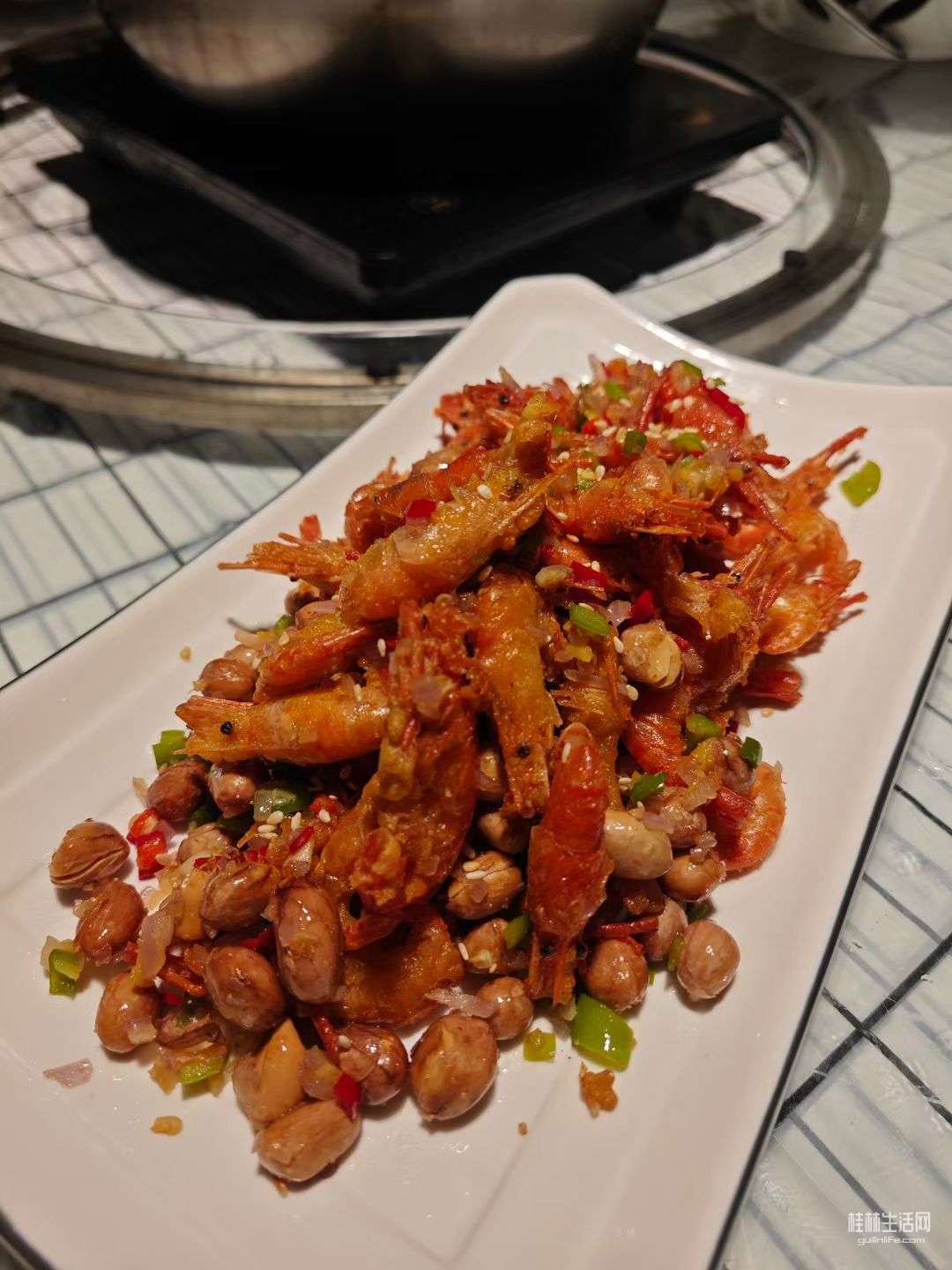 红亮的海虾裹着酥皮,咬开先尝到辣椒的香辣,接着是虾肉的鲜甜,连壳都能嚼得酥脆,越吃越香,根本停不下来。
