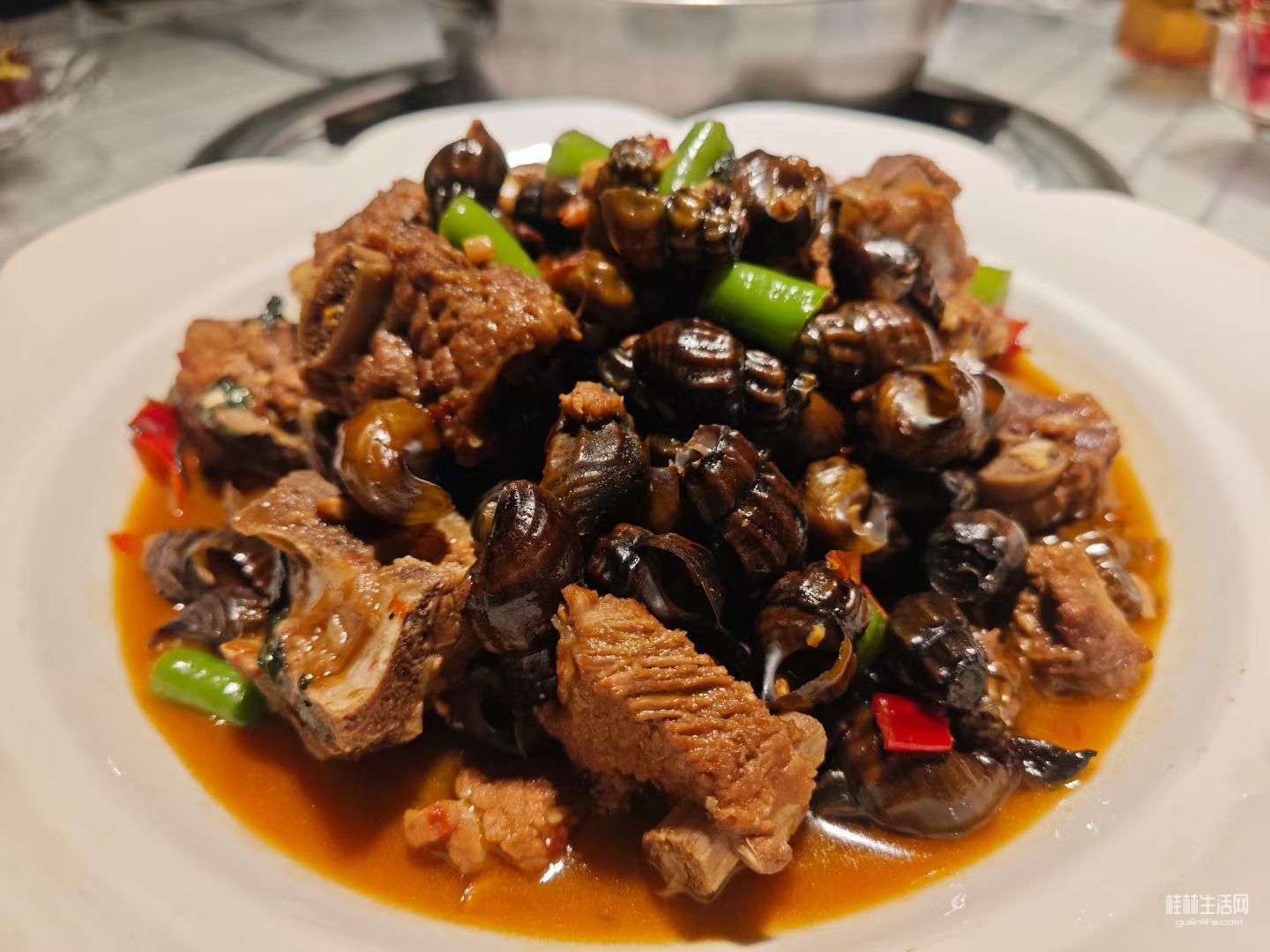 牛排焖螺蛳,螺蛳裹着浓汁嵌在牛排缝里。牛排火候炖得刚刚好,嚼着满是肉香;吸口螺蛳,鲜汁混着酱香直窜喉咙,一口肉一口螺,根本停不下来。
