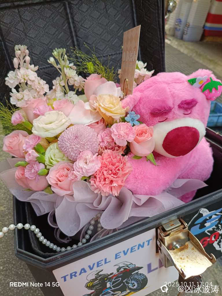 小朋友生日,母亲忙。跑腿栖霞府小区,送这个生日花,现在花店为了生意千方百计的想办法,把花做成创意型。偶发现这个小区都是母亲带着孩子玩,这就是母爱的伟大,可怜天下父母心。饿了七一碗粉,今晚很幸运贴着小姐姐吃