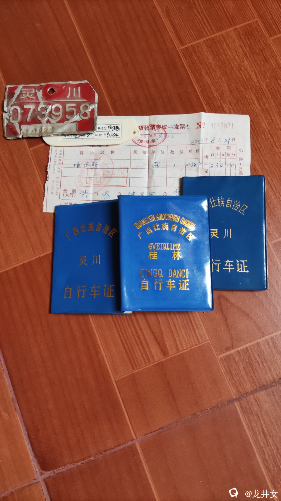 那时的单车很规范,新车入户,派出所要打钢印、挂牌、发自行车证、还配有一个钥匙扣,每年在规定的时间里还要年检。单车在生活中占有很重要的位置,和现在拥有一辆小车有得一比。