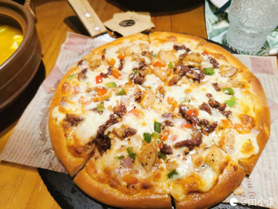 第三个,墨西哥黑椒牛肉杏鲍菇披萨,之前吃过念念不忘,安达小盆友自己抓起来吃了一大块,真是香香滴。