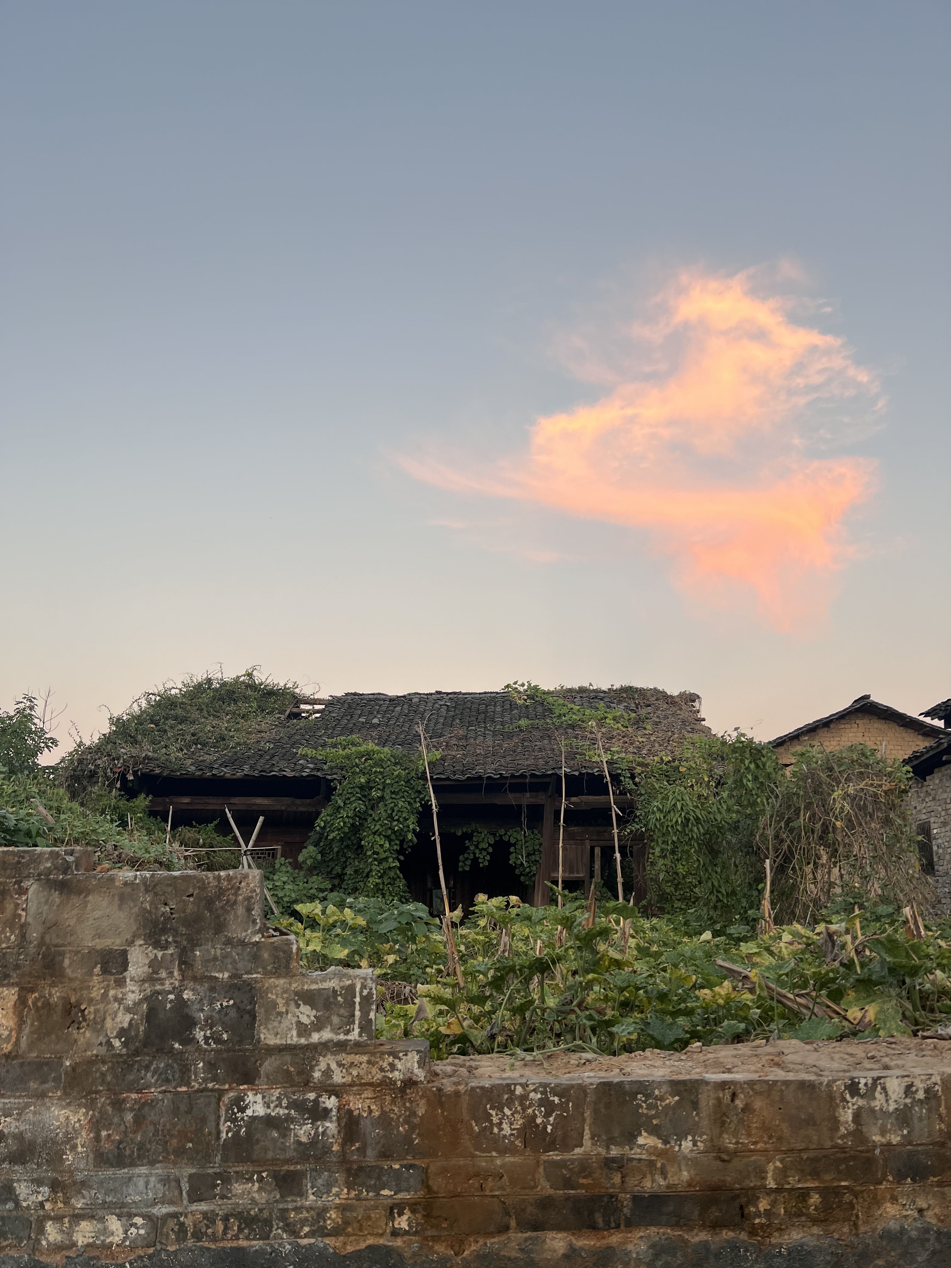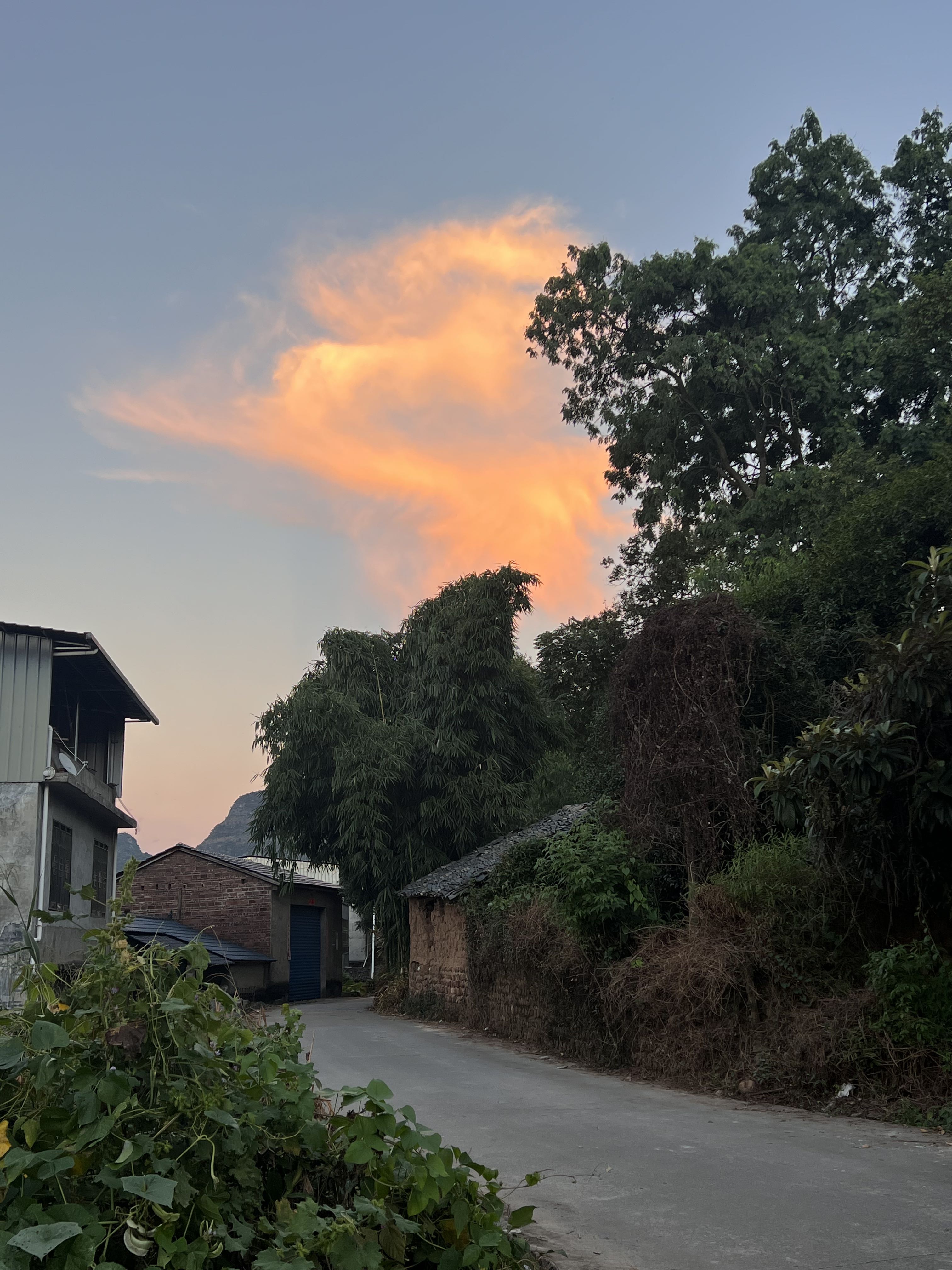 村里的傍晚静悄悄,天空中的这点晚霞很美!