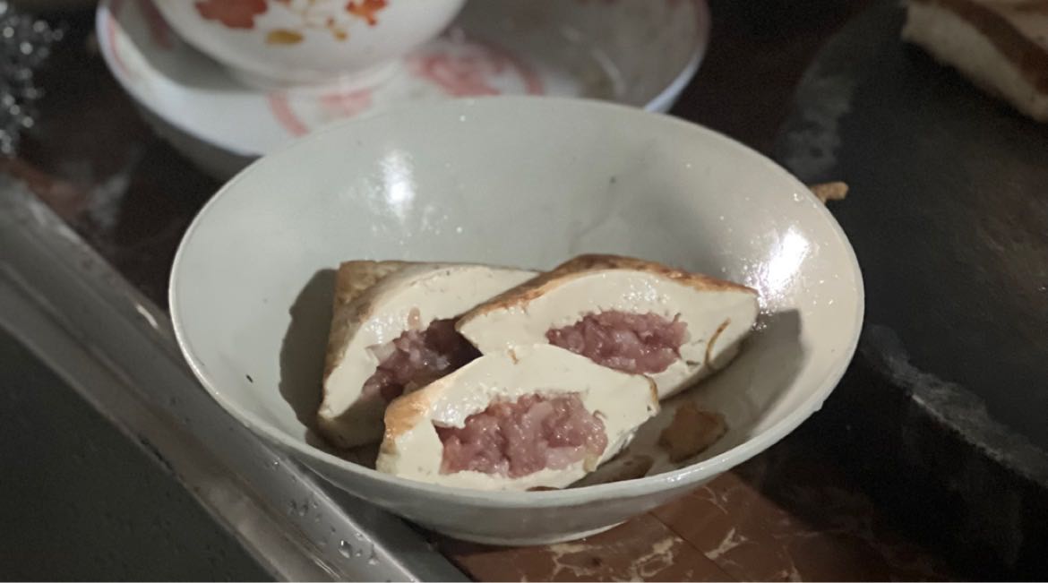 豆腐酿煮在鸡汤里,真是嘎嘎香,汤很甜
