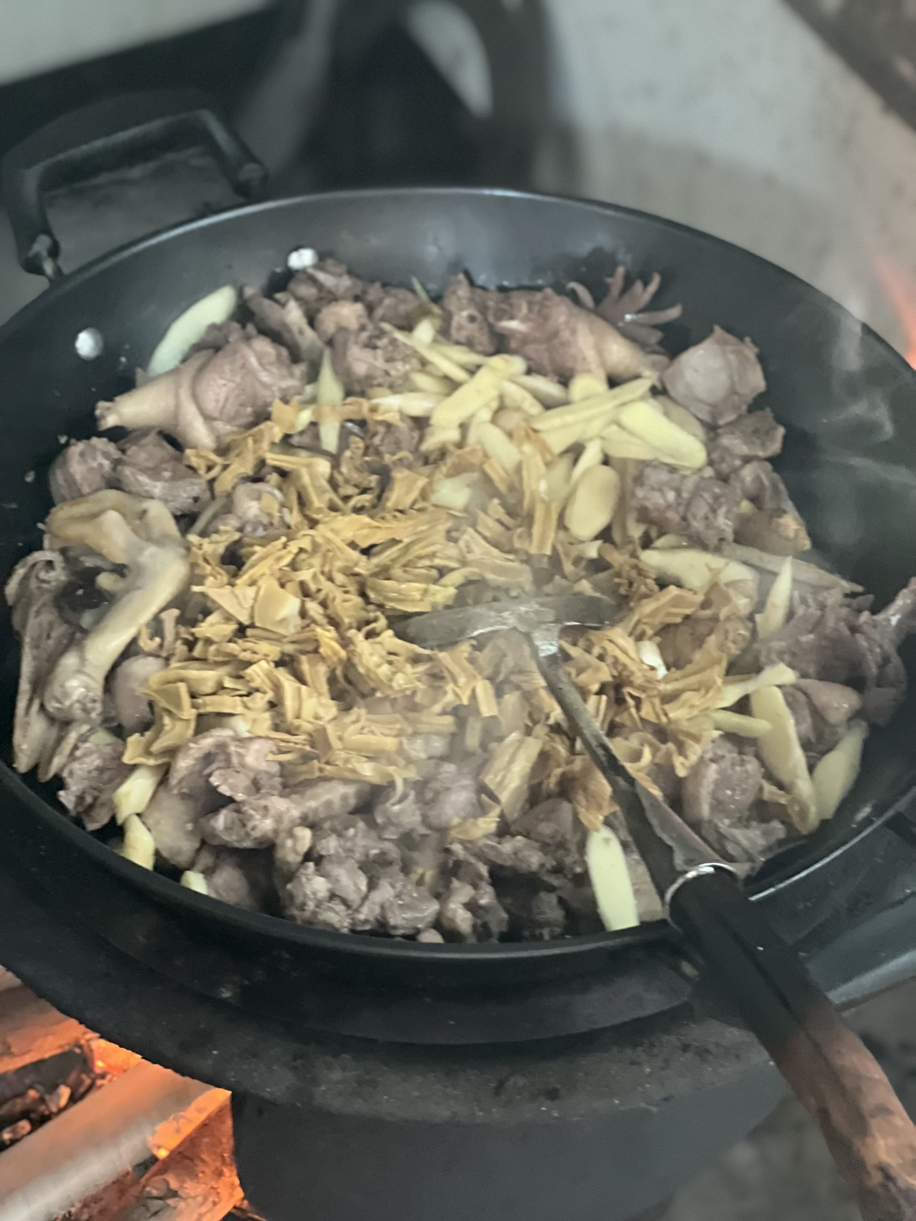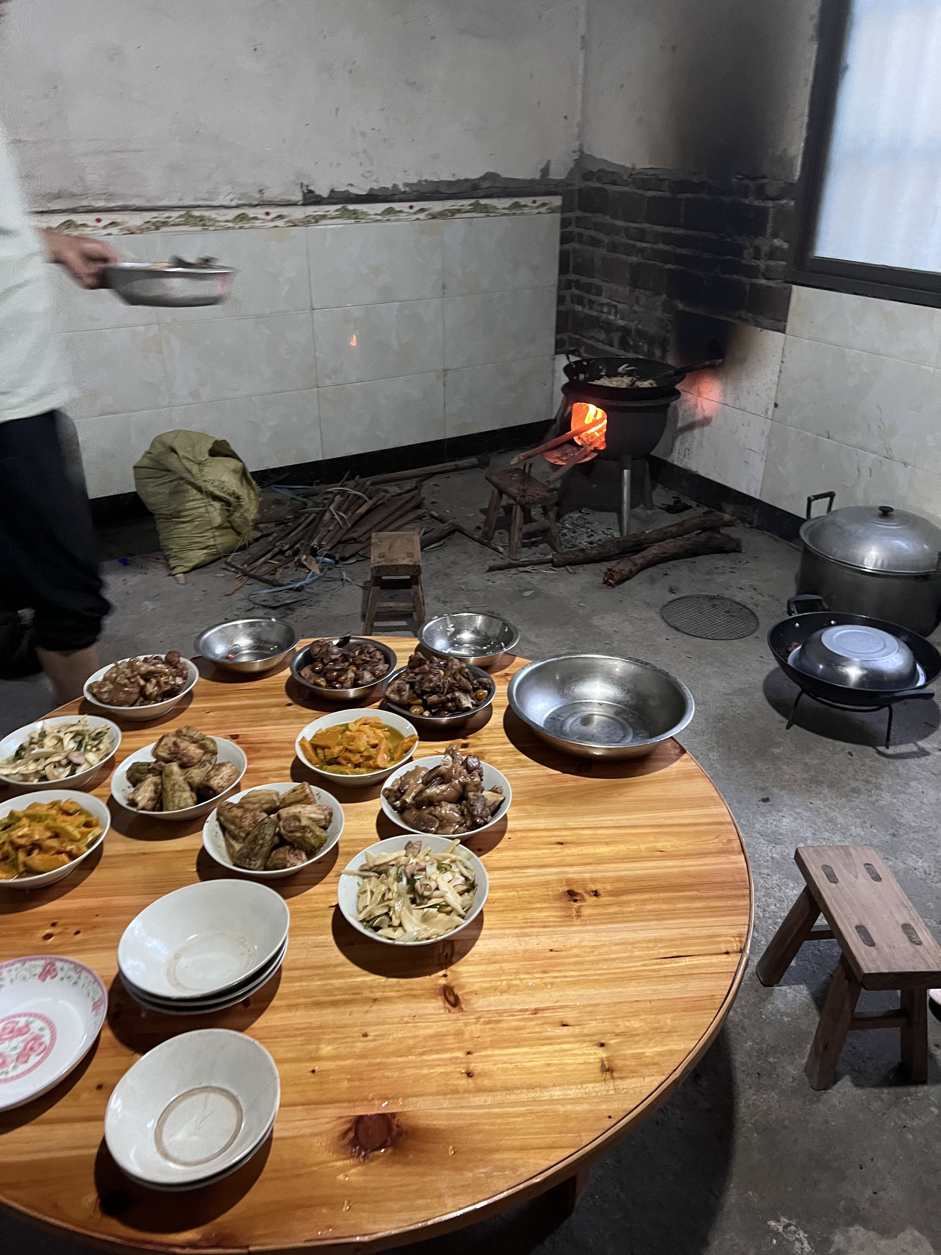 厨房里也在忙碌的准备夜饭中,柴火炒菜就是香
