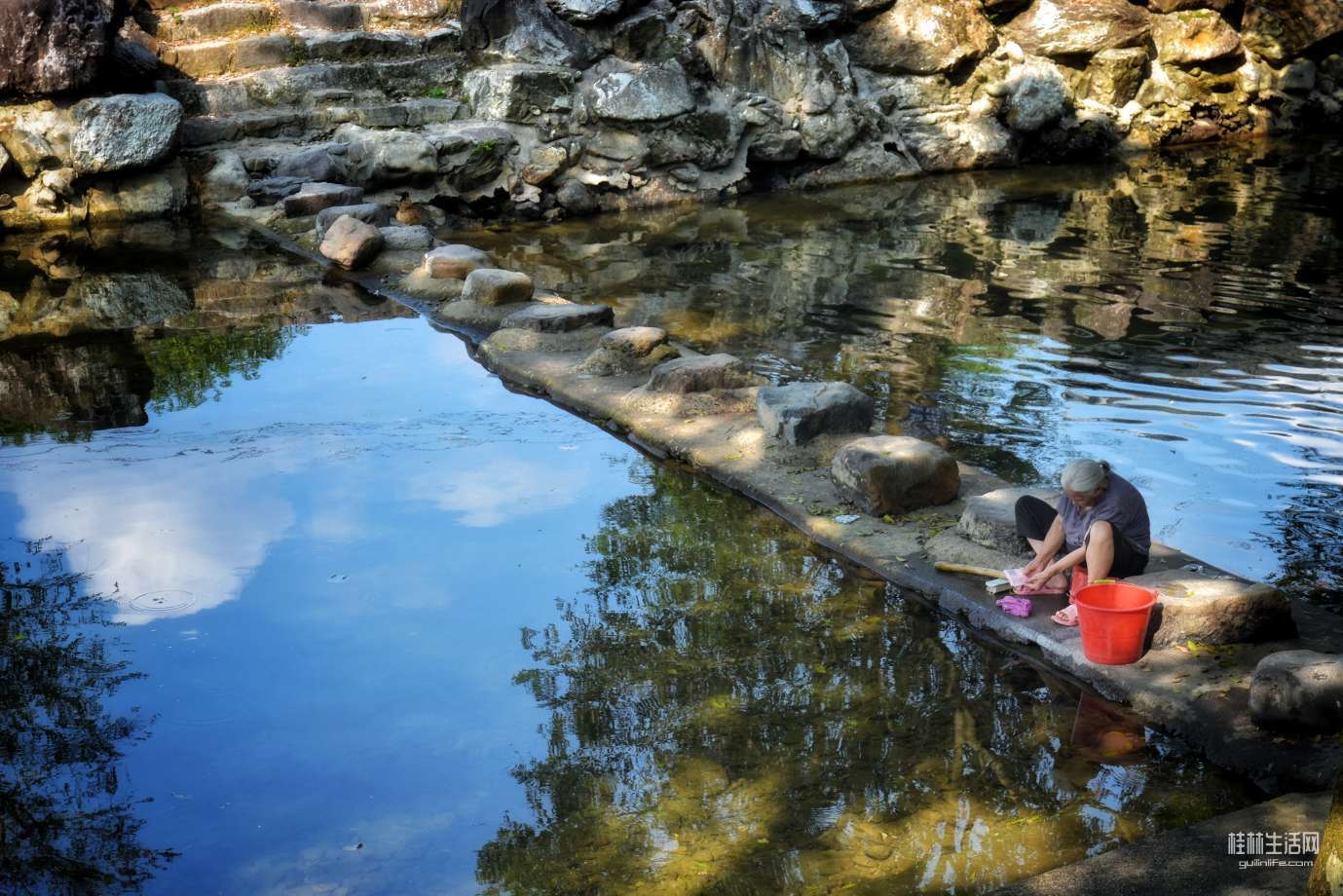 好喜欢有个人在洗衣服的蓝天白云倒影图