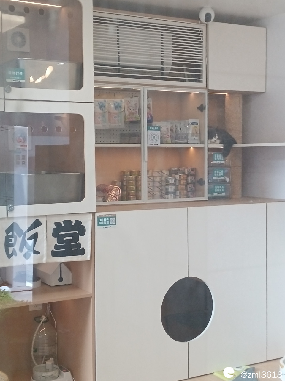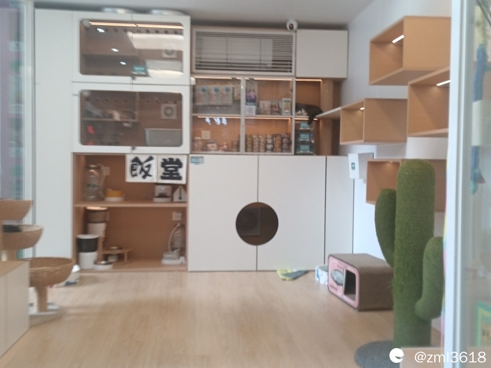 哇,好多猫罐头,猫粮。有只可爱的小花猫睡在博格架上。深圳云谷猫屋的猫咪好享福呀。