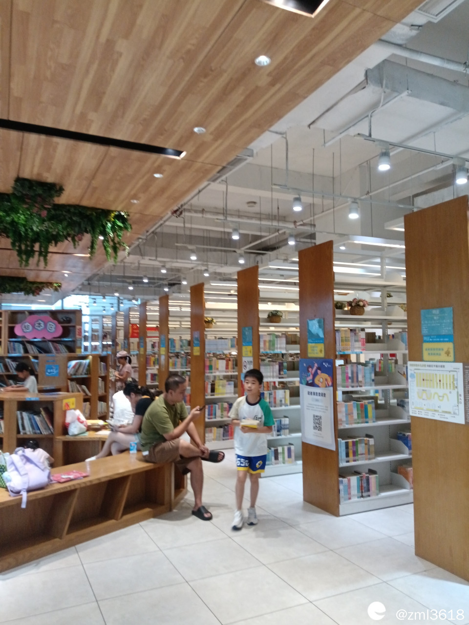 儿童图书馆的一角。有家长陪着孩子来这看书。