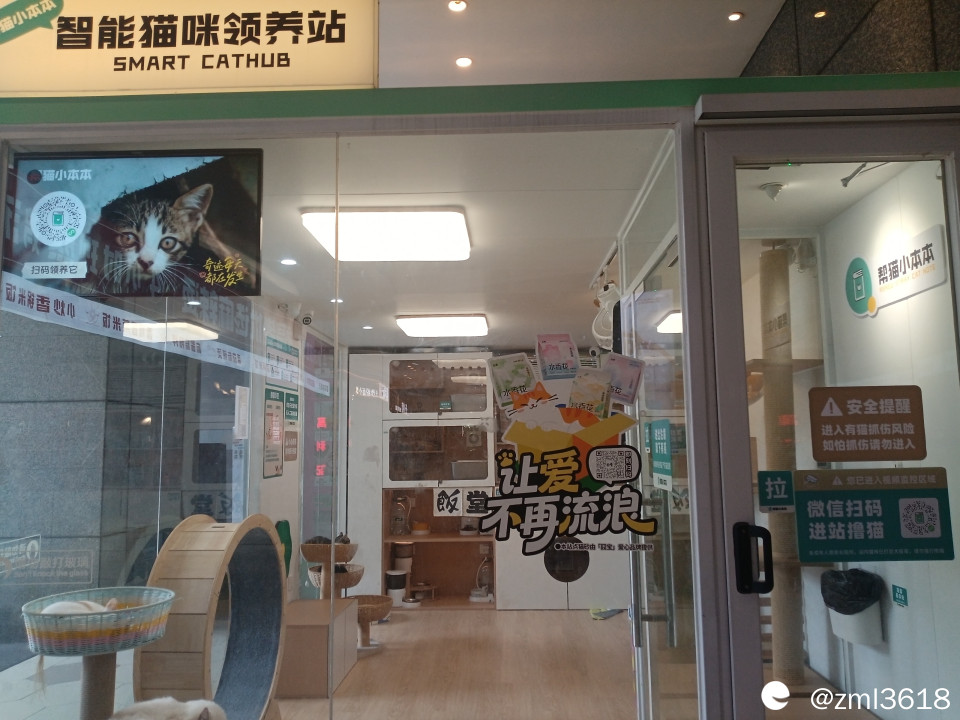 在食街附近不远的转角处,有个智能猫咪领养站。每回到食街吃饭,娃儿总要去看望一下那几只可爱的猫咪。