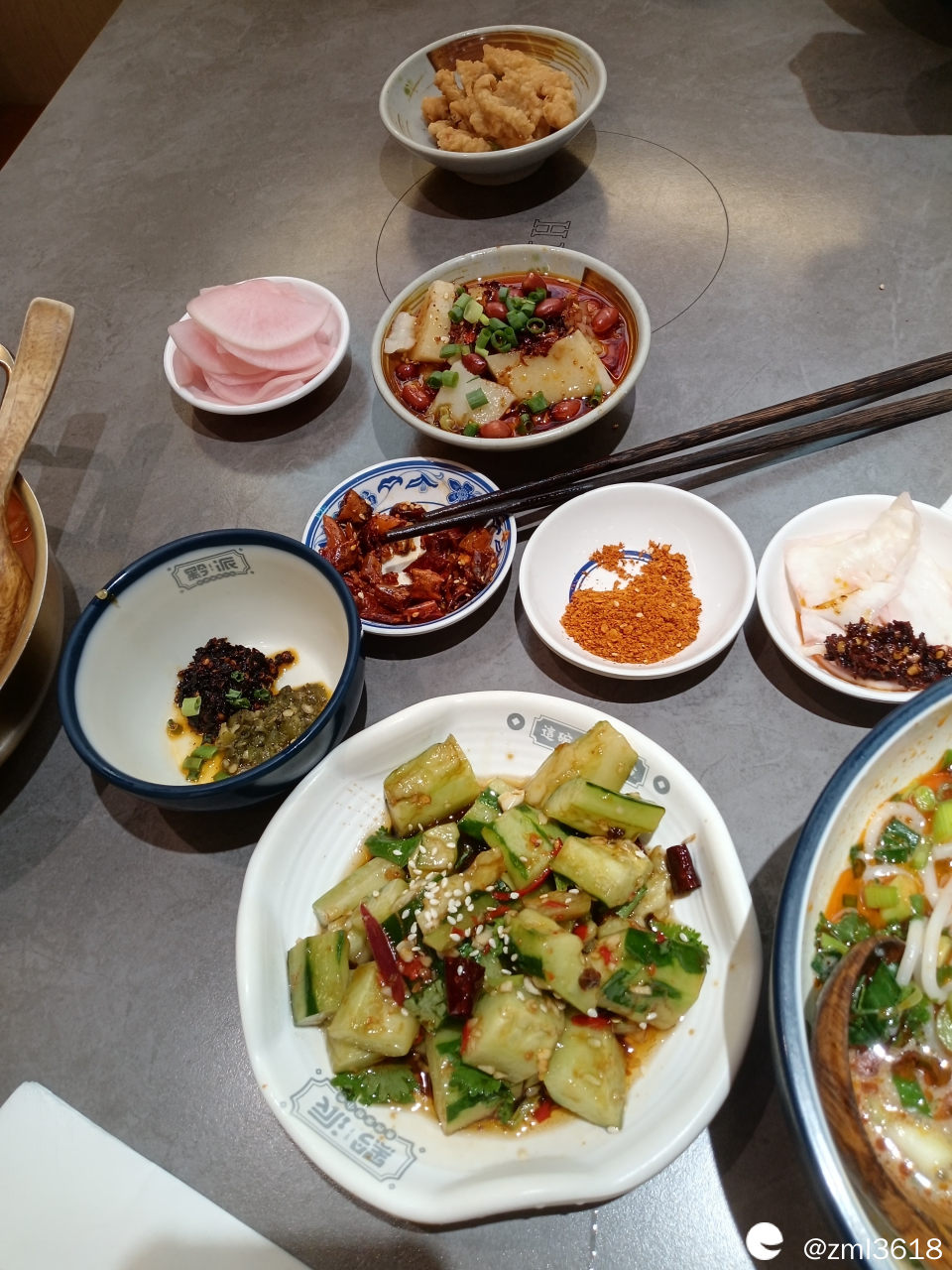 一套贵州羊肉粉套餐,价格还算亲民吧,大约是接近100块,(因为不是我买的单。)另外;配菜有小酥肉,酸黄瓜,凉拌米豆腐,辣椒粉盐。