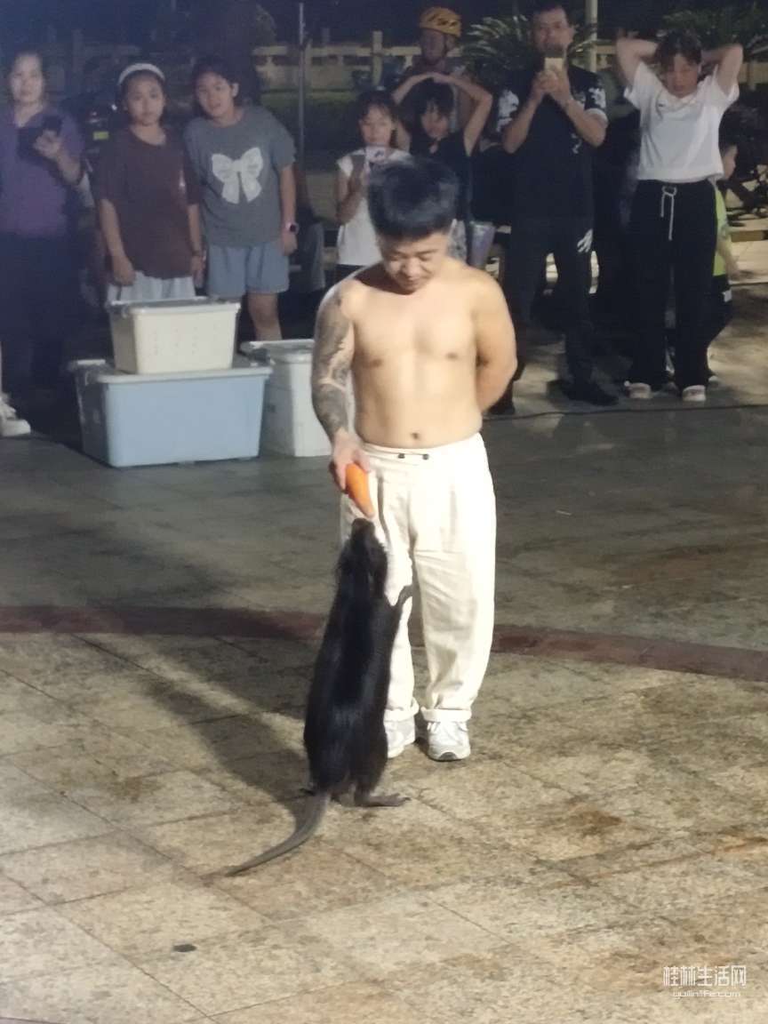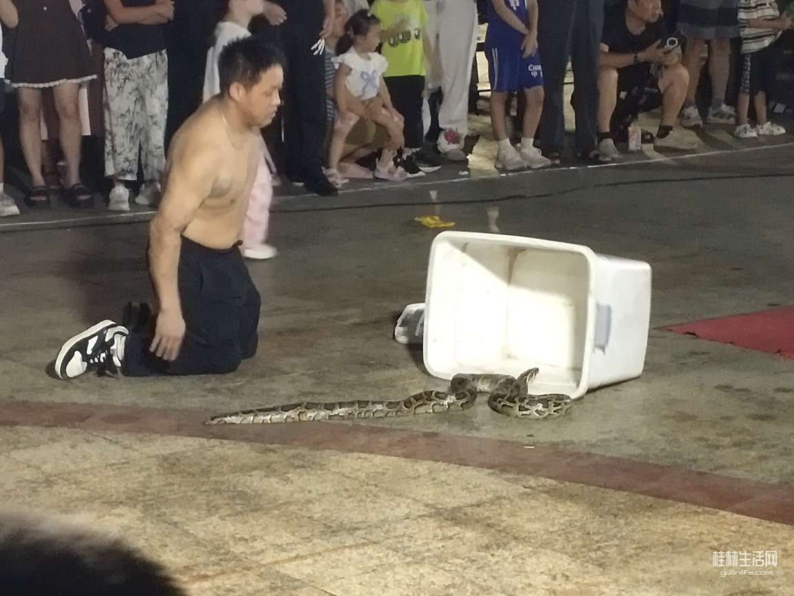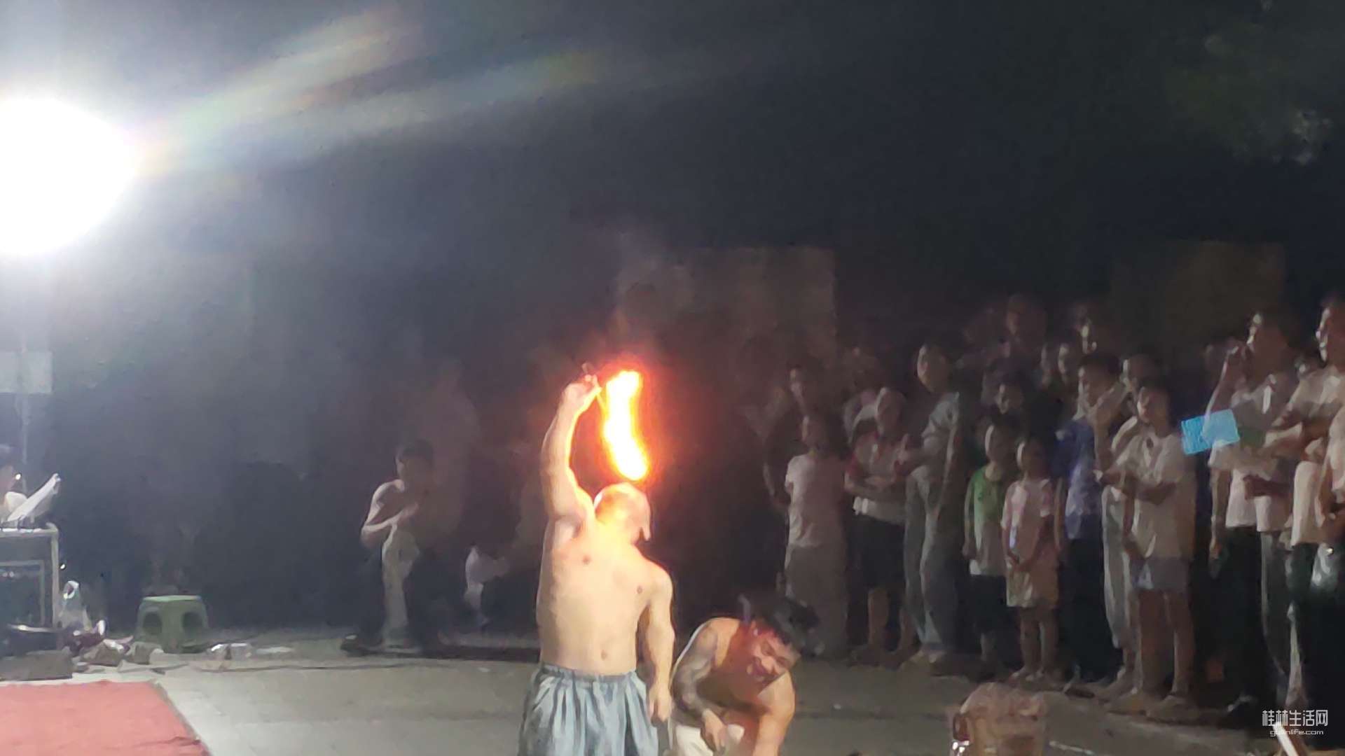 当火焰之光点亮临桂文化广场的夜色,红红烈火从嘴巴喷出,让人感叹震撼之时,平日里静悄悄的广场,被里三层,外三层的包裹着。