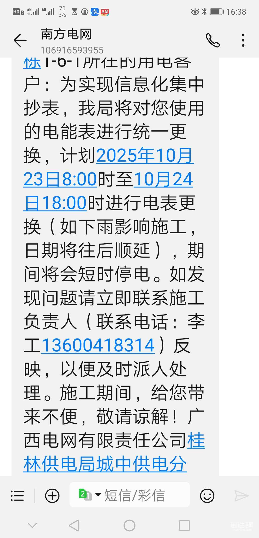 刚收到供电局发来我们这片要免费换装新表的短信通知,不免让人有点耽忧,但愿我们桂林山美,水美,心灵美,不会出什么幺蛾子。