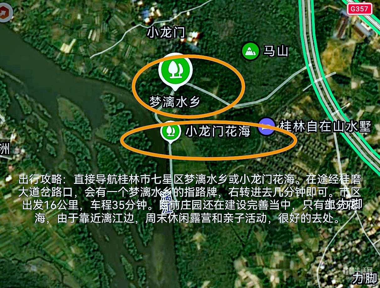出行攻略:直接导航桂林市七星区梦漓水乡或小龙门花海。在途经桂磨大道岔路口,会有一个梦漓水乡的指路牌,右转进去几分钟即可。