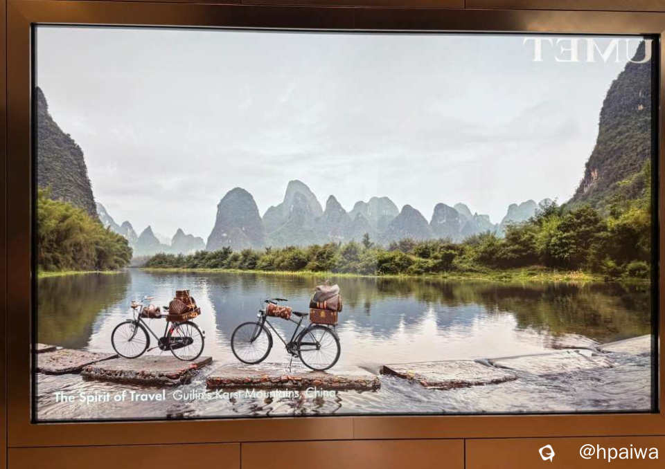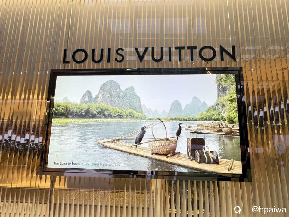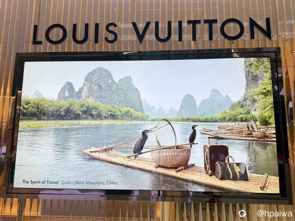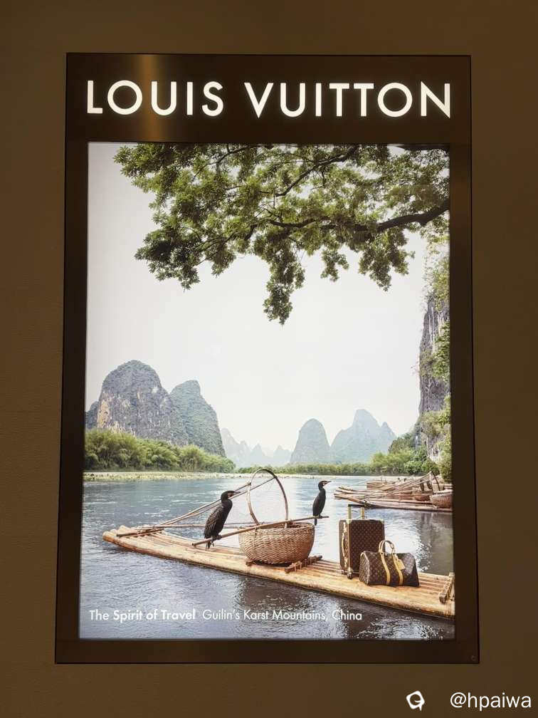今晚和我女儿吃饭,她10月份飞了日本、泰国、意大利三个国家不同的城市,她说现在全球的LV店都在放桂林山水的图片。