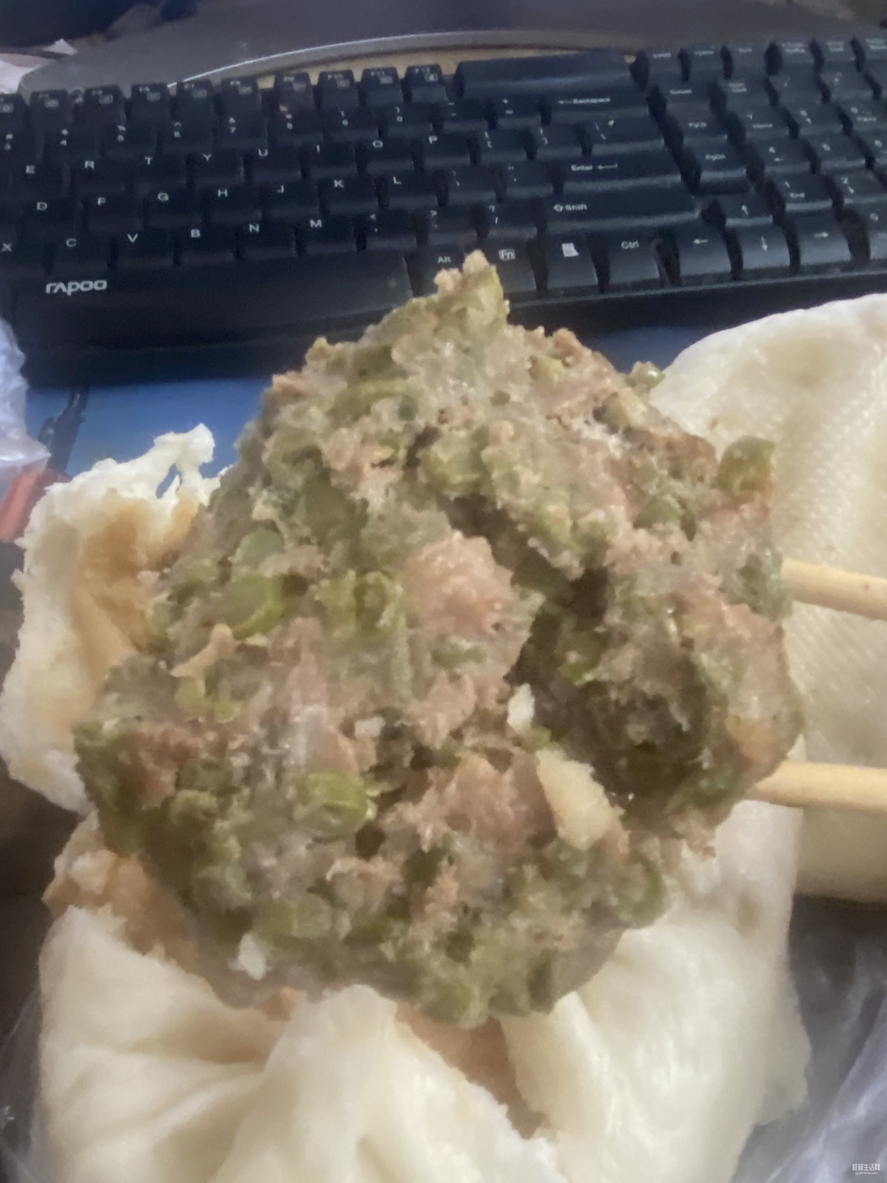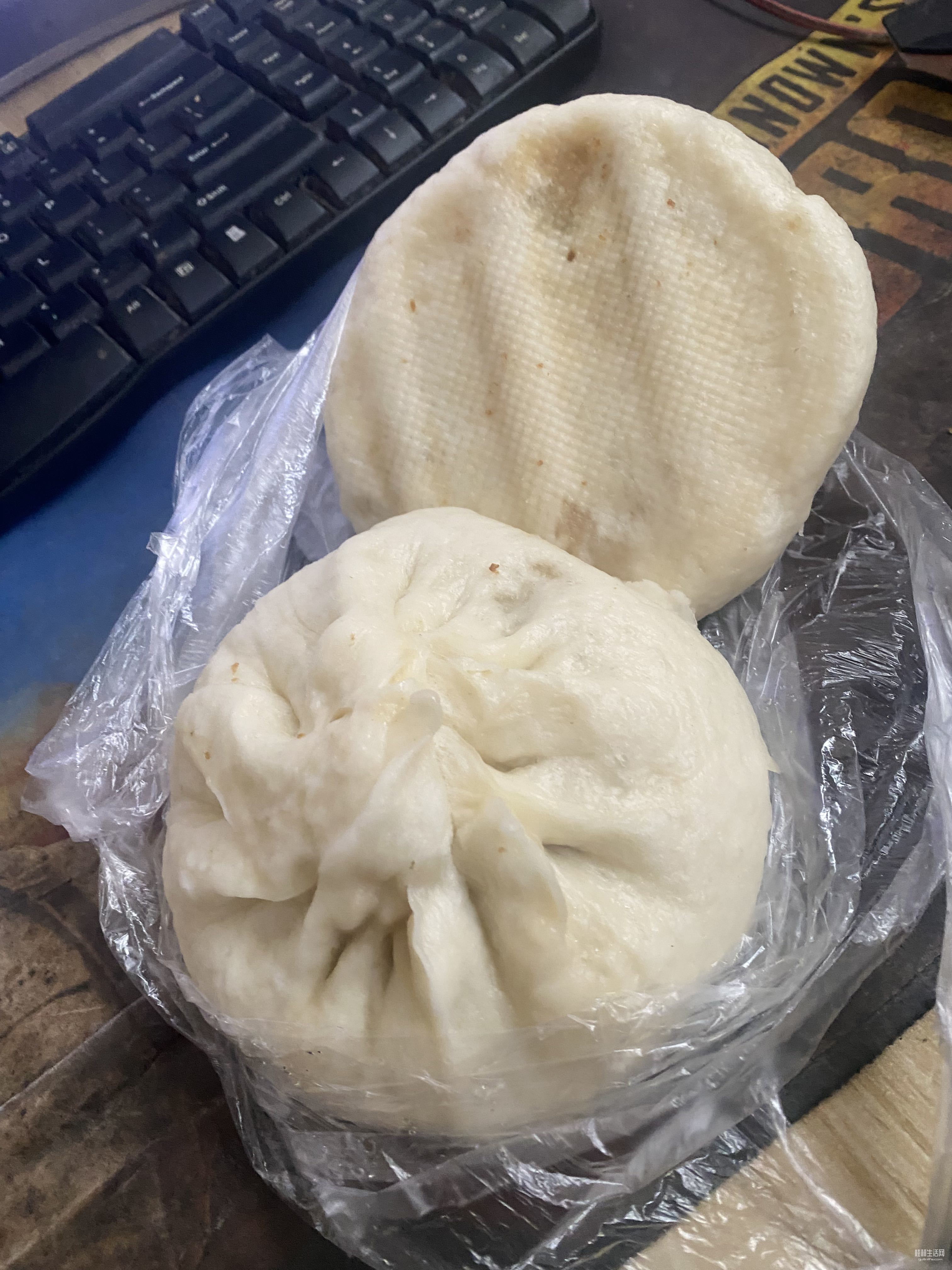 这个是我中午买的肉包(如下图),看起来个头蛮大个肉馅的比例也比对面东山园包子的多(地点:瓦窑),但味道确实不怎样,哪过买哪过晓得!