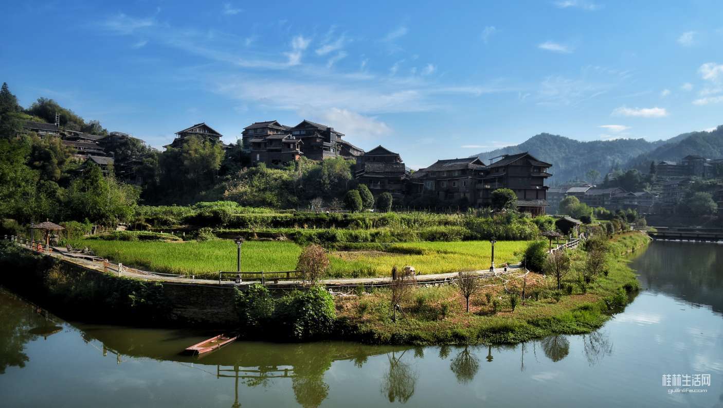 侗乡风光如诗如画,青山叠嶂似翠屏环抱,清溪蜿蜒若银链轻响。