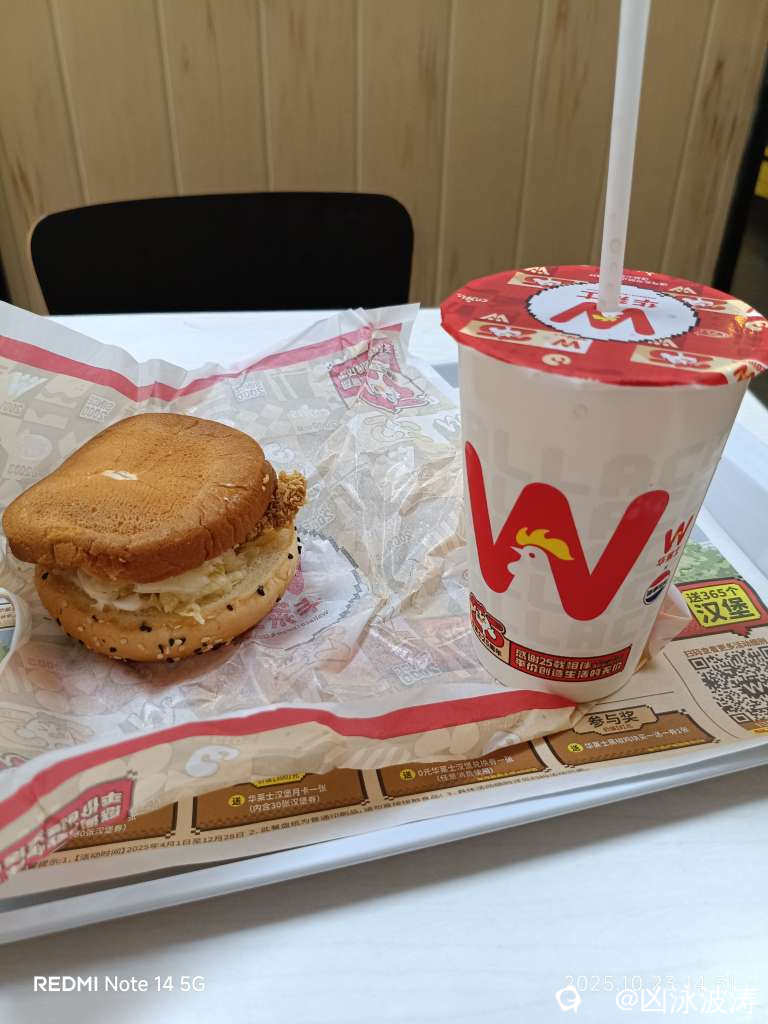 午餐的汉堡今天头一次七,抖音下单才六米。送可乐