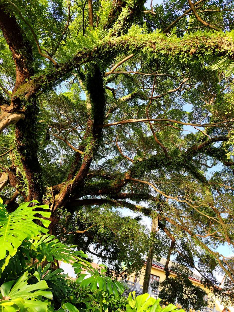赶到古南门发觉这里开集市了,像赶圩那样来了好多人,熙熙攘攘来来往往的,但是没见有表演,也可能是我来迟了表演结束了,既然如此那就去看一下古南门的老古榕吧,因为每一棵老树都是一道风景,古南门这棵老树更是出众,百看不厌,遮天蔽日的榕荫被不少人工树干支撑着,保护措施很到位。
