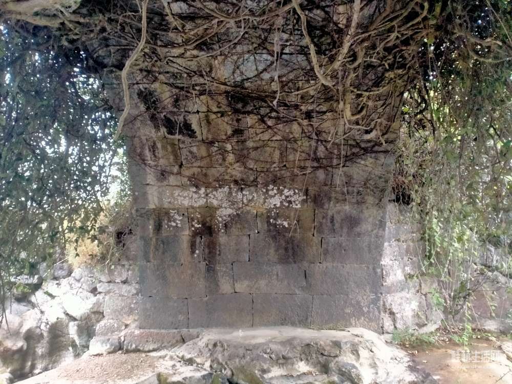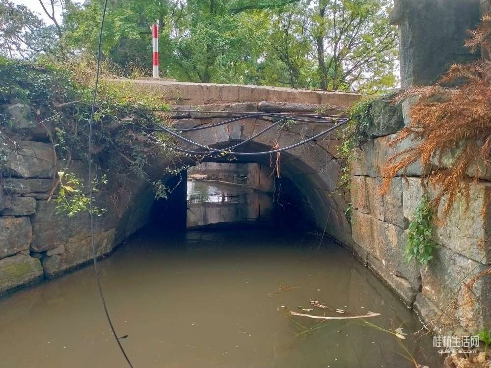 斜水村口看到这两个大石碑,下车走到沟底,果然是个古石拱。