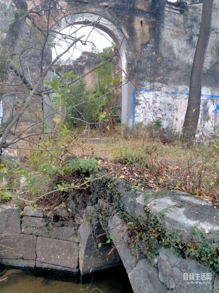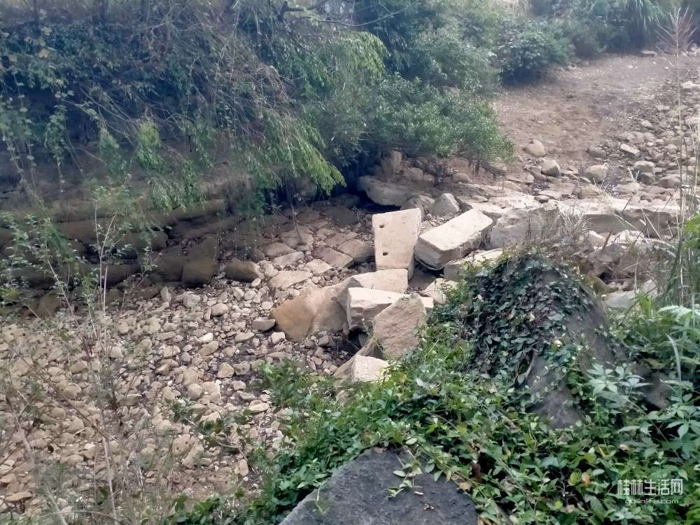 顺着小河下游方向,在立坪村东北有座倒塌的大凉亭和石板桥。