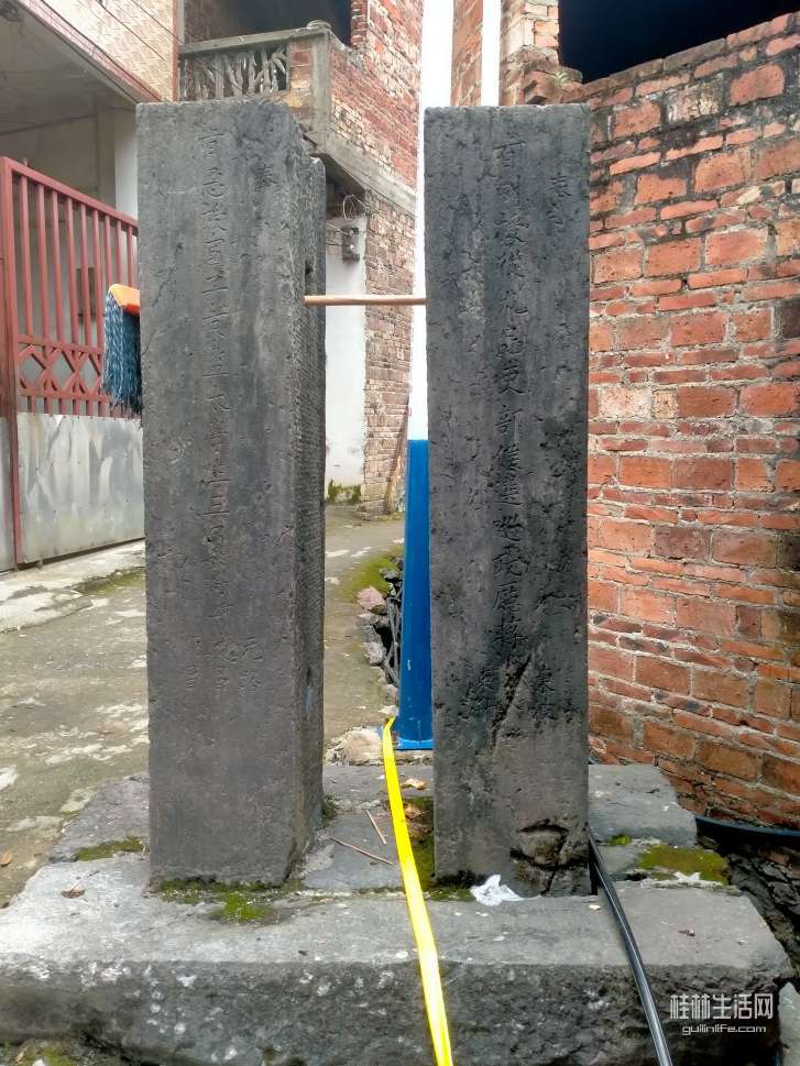 这座新建了漂亮桥廊的石板桥是村民的休闲场所,桥头有两块模糊的大碑记。
