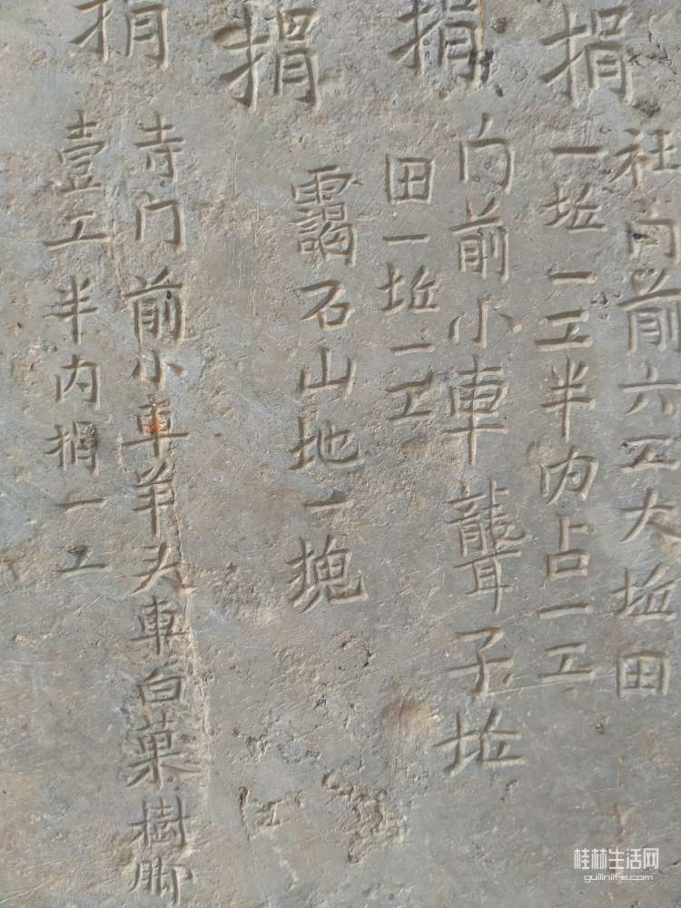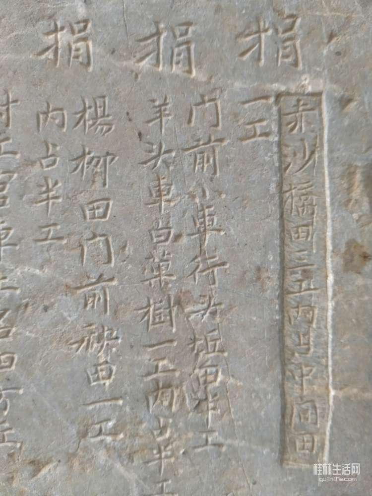 凉亭墙上的料石很多有刻字,东一个西一个,应该是重修的时候胡乱码上去了事。