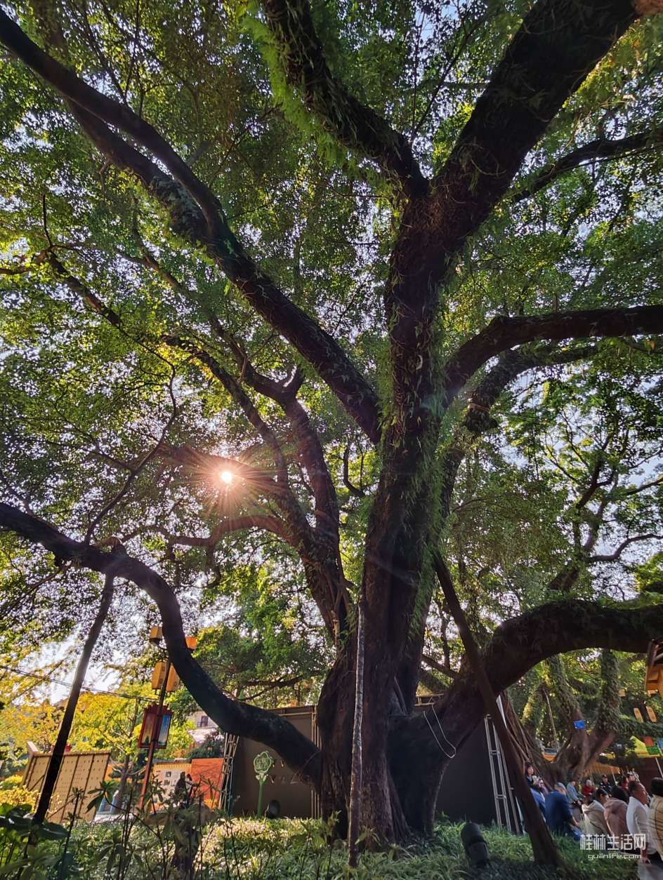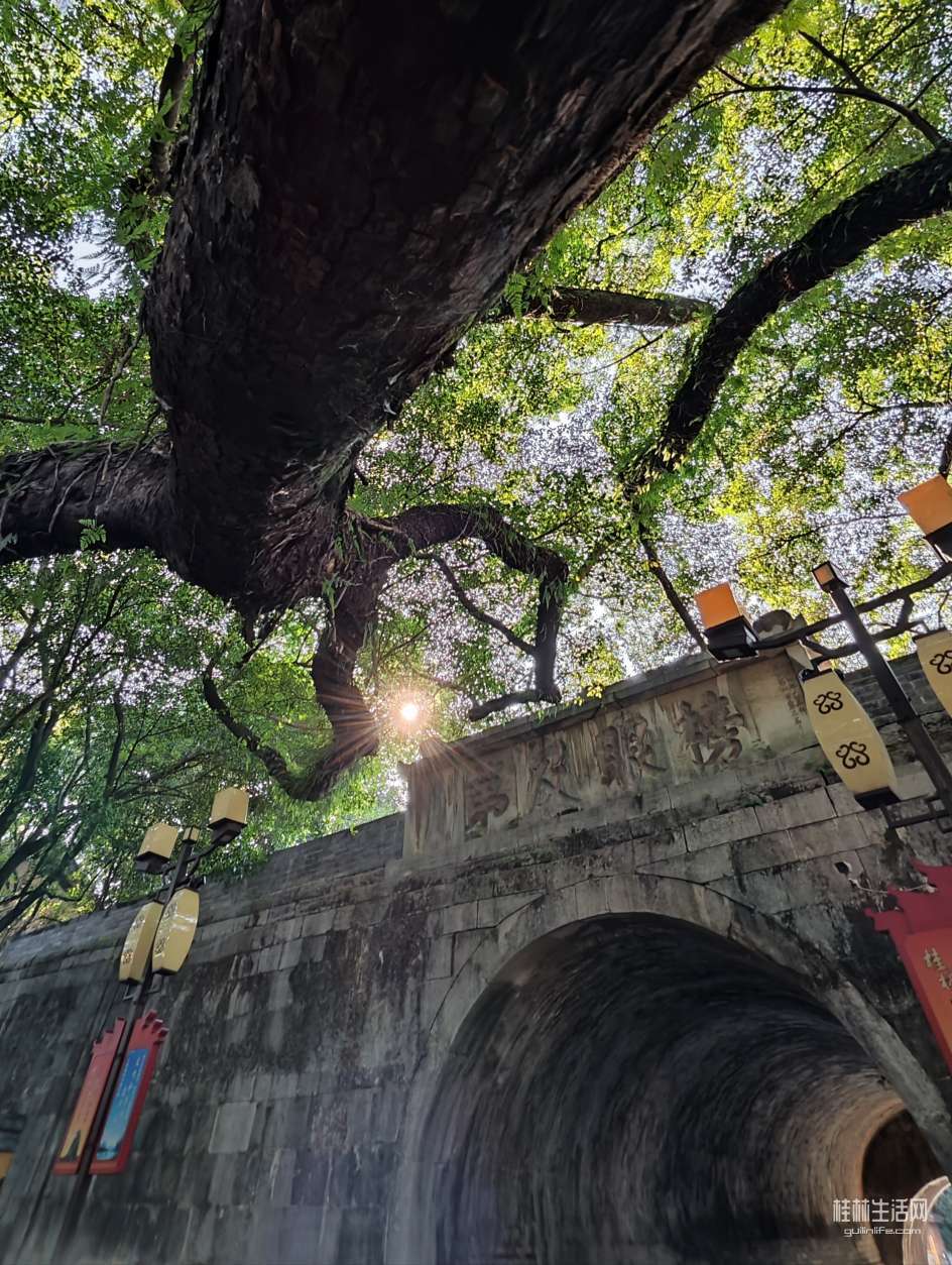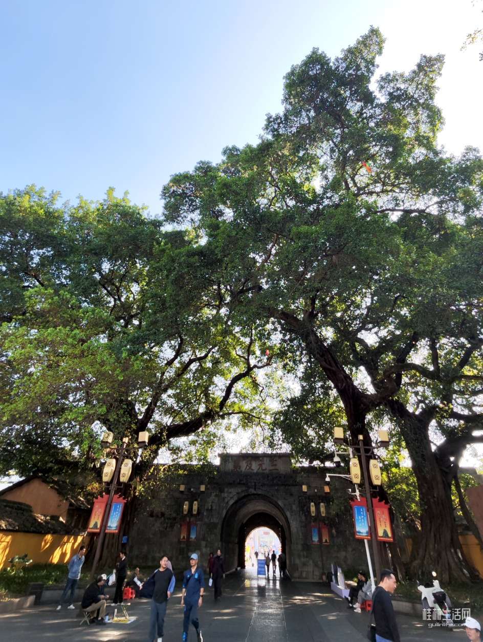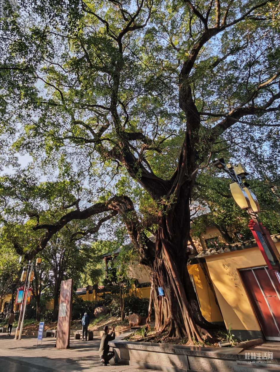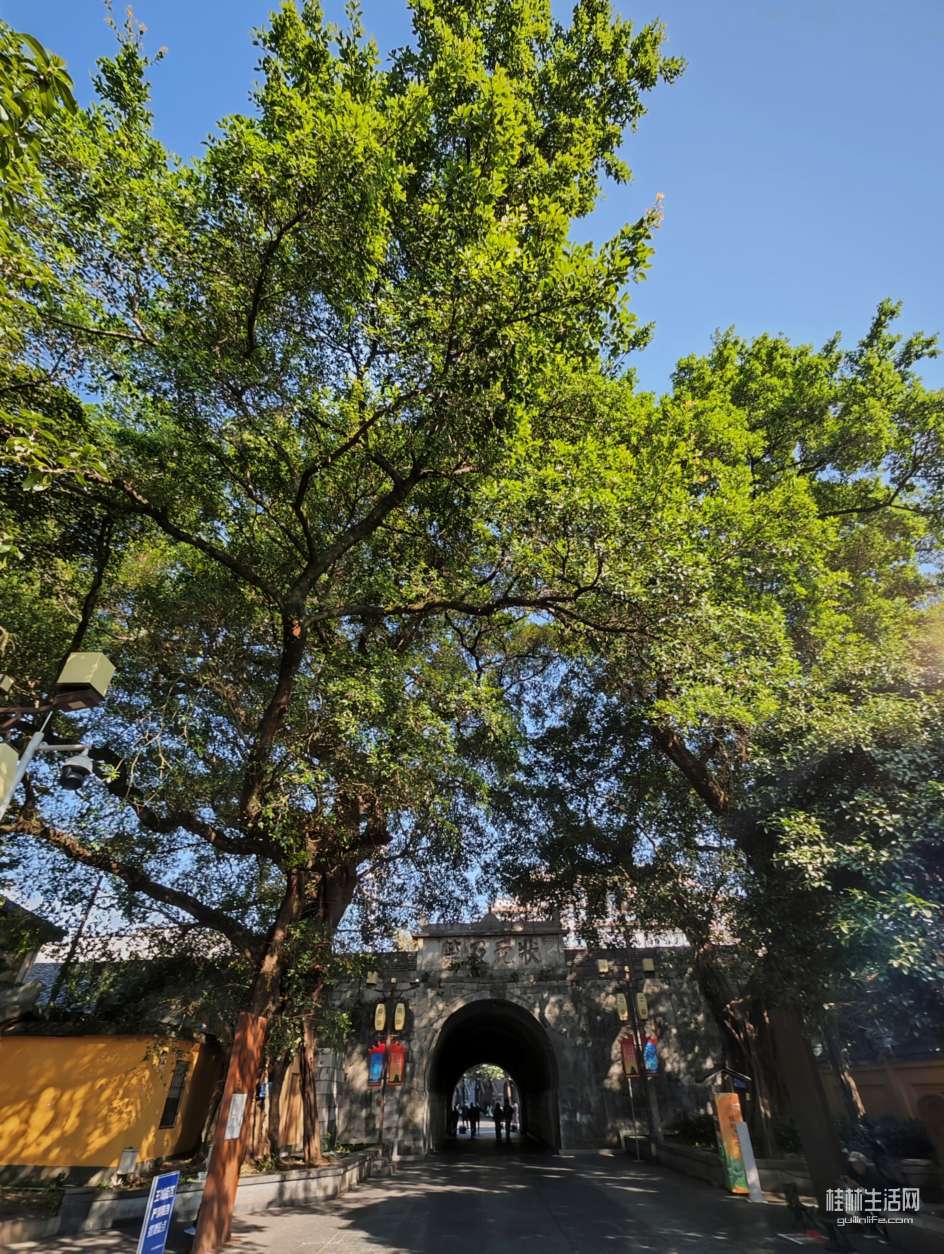 靖江王城三个大门:三元及第、状元及第、榜眼及第都有大榕树,长得腰围粗壮冠盖如云的共七棵,原以为它们至少都有三、五百年树龄,实地一看其实各自才一百岁,清末民初生,相比古南门大榕树属于树子树孙,跟阳朔一千五百岁大榕树更不能相提并论。