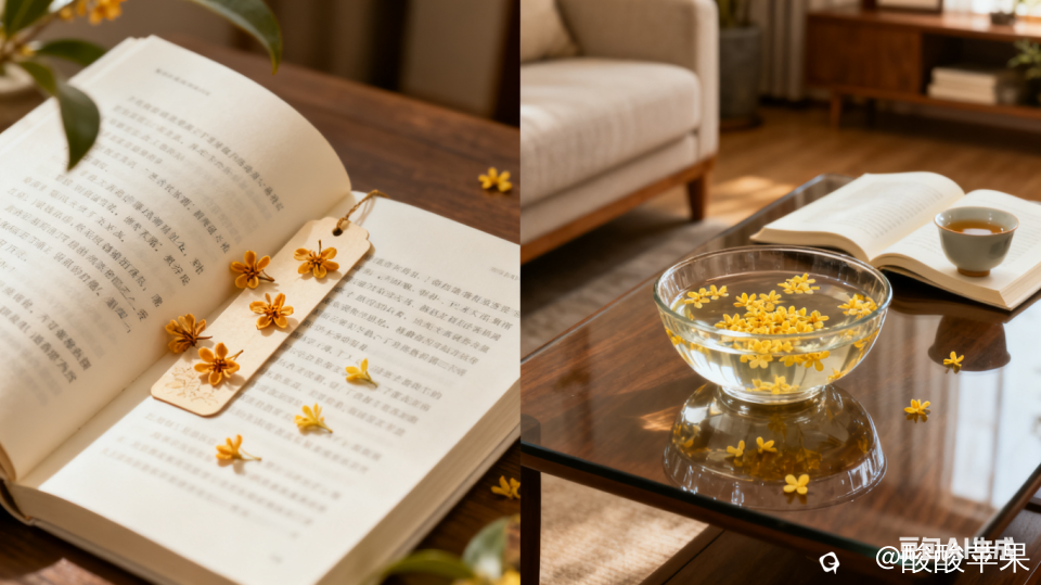 · 桂花晒干做书签:捡几朵完整的桂花,夹更书本里头,过段时间翻开,一整本书都是香的,看书都有劲点!