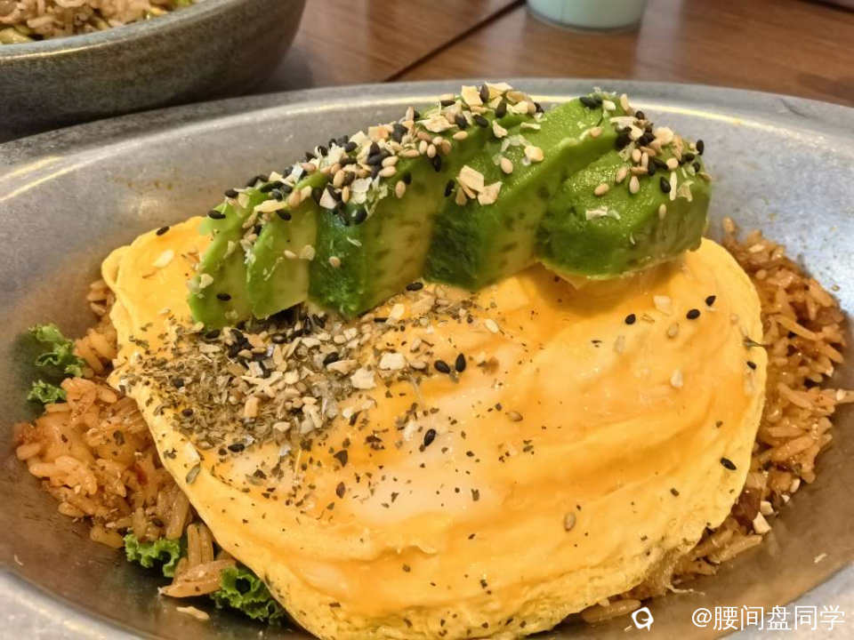 牛油果滑蛋泡菜饭,颜值打上100分,料子也是满满滴,用勺子扒开,真是秀色可餐~