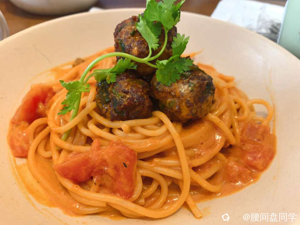红酸汤肉丸意面,意面柔韧有度,不是很硬也不是很软,处理过的肉丸别有风味,还有辣个红酸汤,真是可以拿来泡饭吃~
