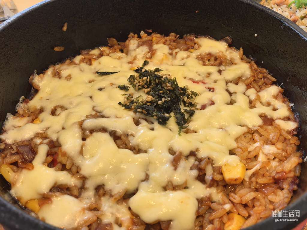 原切肥牛芝士拌饭,芝士的原味像是裹在泡泡屋里面,拉丝可以串起来,一点都不腻,好满足,喵喵喵~